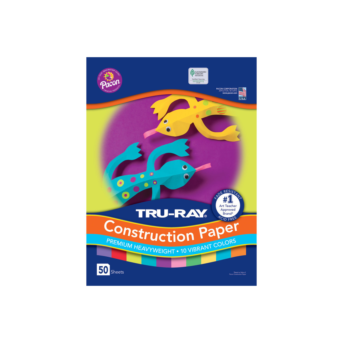 Heavyweight 100% vat-dyed sulphite with longer, stronger fibers. Tru-Ray® Construction Paper is tough enough to take scoring, folding and curling without cracking and tearing. Its superior fade-resistance keeps projects brighter and fresher longer colors. Colors include: Magenta, Festive Green, Turquoise, Brilliant Lime, Violet, Atomic Blue, Shocking Pink, Pumpkin, Gold and Festive Red. Acid free for less fade. 50% recycled fiber content and recyclable. Measures 12" x 18". Each pack includes 50 sheets.