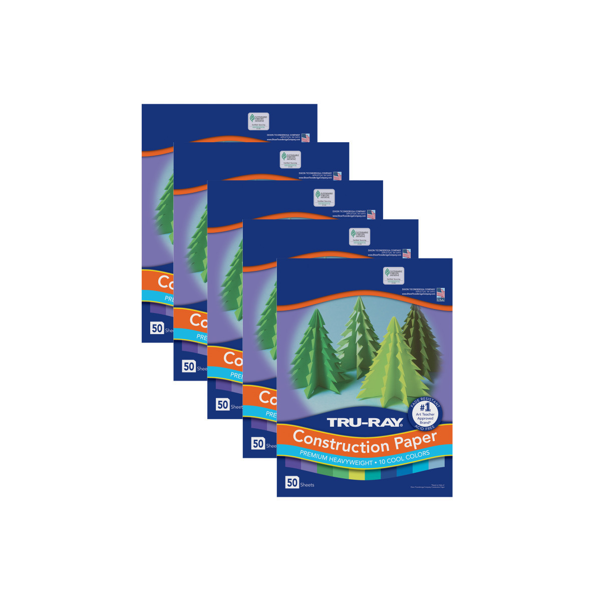 Heavyweight 100% vat-dyed sulphite with longer, stronger fibers. Tru-Ray® Construction Paper is tough enough to take scoring, folding and curling without cracking and tearing. Its superior fade-resistance keeps projects brighter and fresher longer. Colors include: Festive Green, Turquoise, Brilliant Lime, Violet, Holiday Green, Sky Blue, Royal Blue, Purple, Atomic Blue and Blue. Acid free for less fade. Recyclable. Measures 9" x 12". Each pack includes 50 sheets. Sold as 5 packs for a total of 250 sheets.