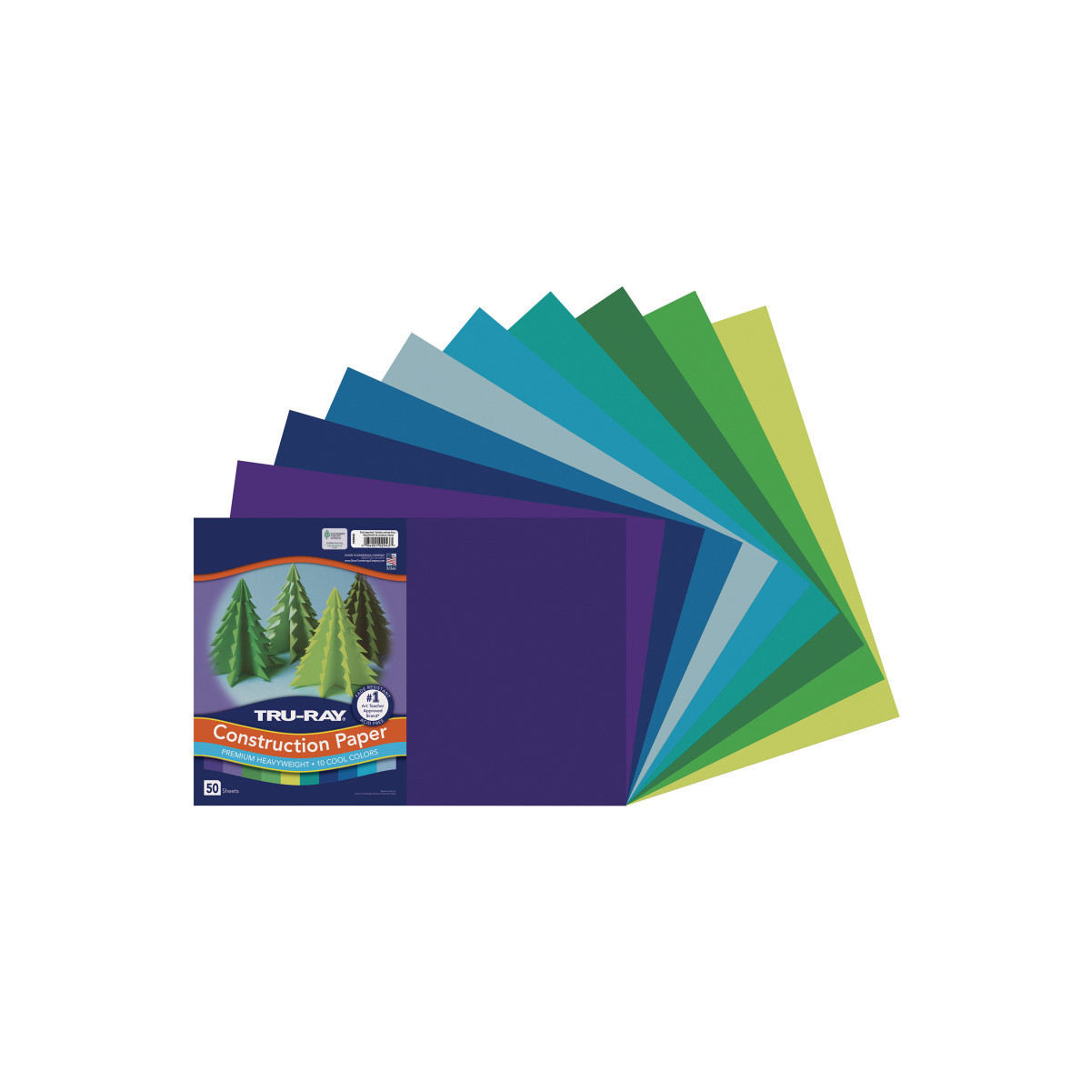 Heavyweight 100% vat-dyed sulphite with longer, stronger fibers. Tru-Ray® Construction Paper is tough enough to take scoring, folding and curling without cracking and tearing. Its superior fade-resistance keeps projects brighter and fresher longer. Colors include: Festive Green, Turquoise, Brilliant Lime, Violet, Holiday Green, Sky Blue, Royal Blue, Purple, Atomic Blue and Blue. Acid free for less fade. Recyclable. Measures 12" x 18". Each pack includes 50 sheets.