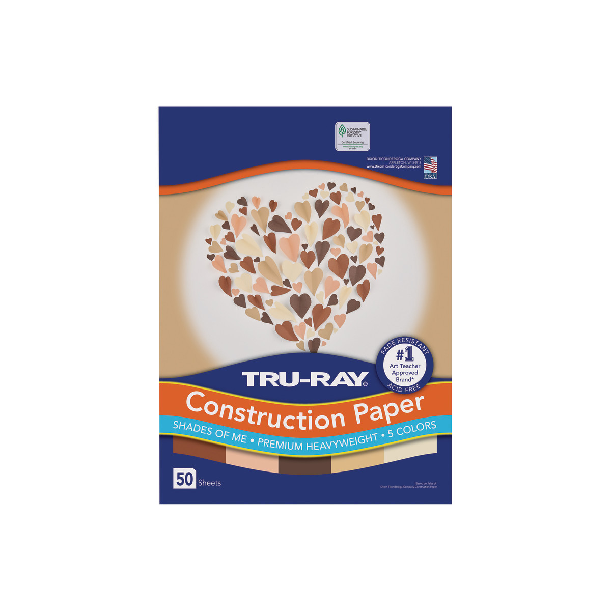 Every student is unique and that’s why we make Tru-Ray® Shades of Me. This premium, heavyweight, construction paper comes in a variety of hues, from ivory to dark brown. Tru-Ray® Construction Paper is tough enough to take scoring, folding and curling without cracking and tearing. Its superior fade-resistance keeps projects brighter and fresher longer. Five creative shades for inclusive curriculums. Colors include: Ivory, Almond, Salmon, Warm Brown and Dark Brown. Acid free for less fade. 50% recycled fiber content and recyclable. Measures 9" x 12". Each pack includes 50 sheets.