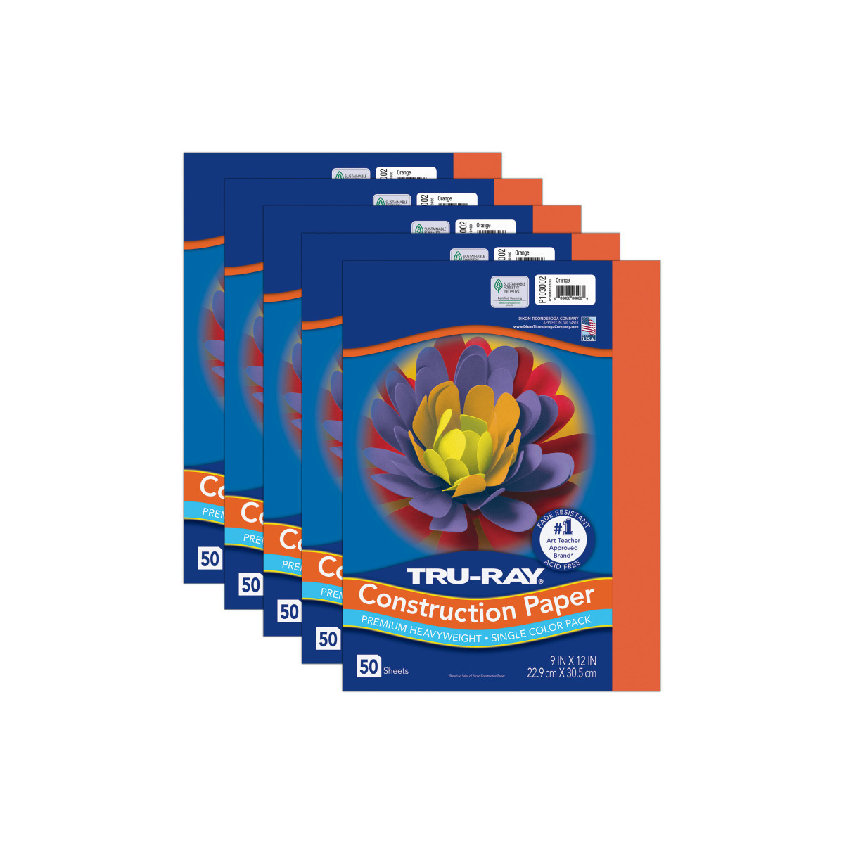 Tru-Ray® Construction Paper, Heavyweight, Orange, 9" x 12", 50 Sheets Per Pack, 5 Packs