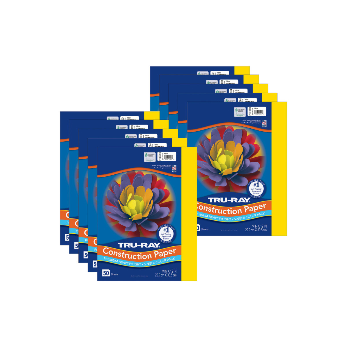 Heavyweight 100% vat-dyed sulphite with longer, stronger fibers. Tru-Ray® Construction Paper is tough enough to take scoring, folding and curling without cracking and tearing. Its superior fade-resistance keeps projects brighter and fresher longer. Available in 28 stay bright colors. Acid free for less fade. 50% recycled fiber content and recyclable. Measures 9" x 12". Each pack includes 50 sheets. Sold as 10 packs for a total of 500 sheets.