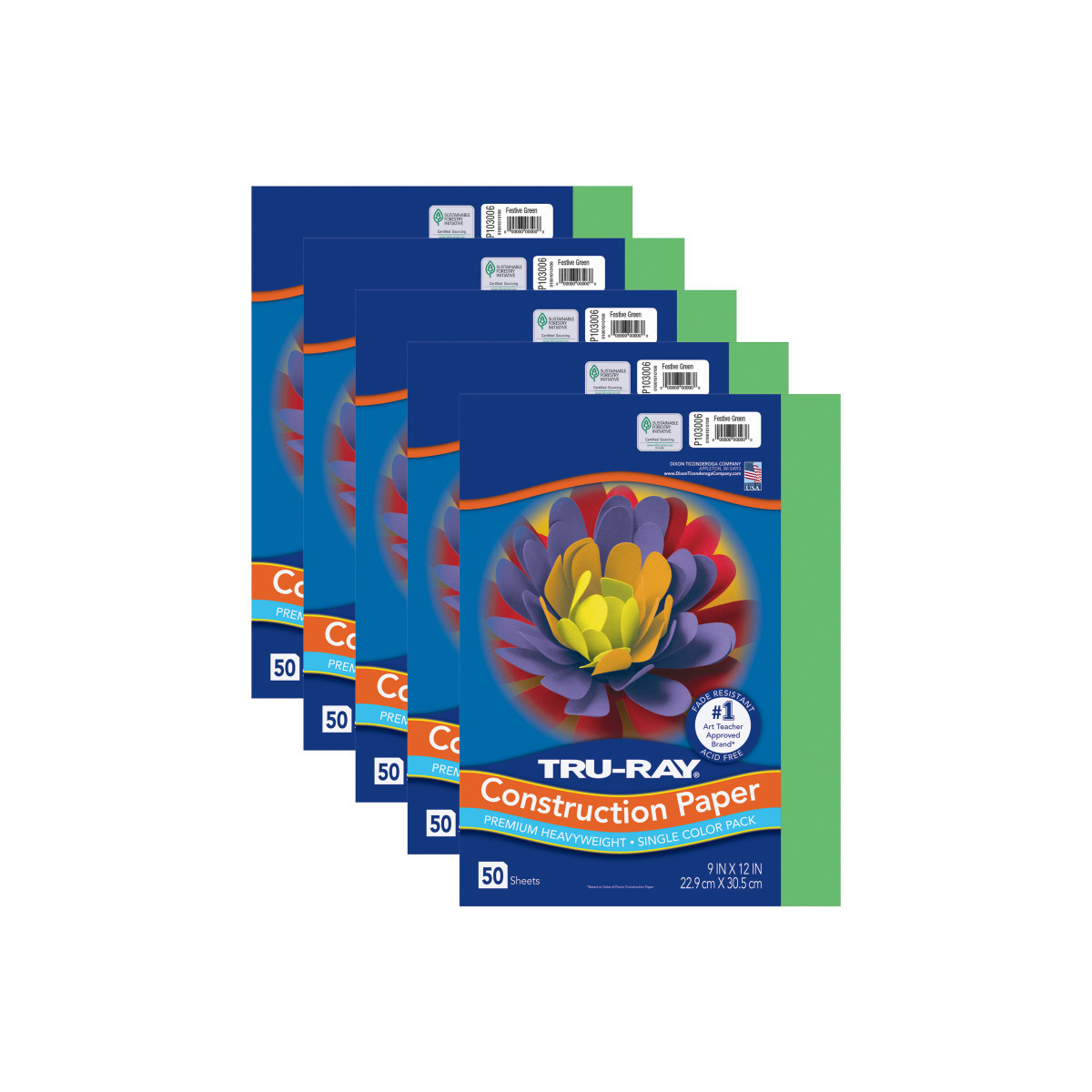 Tru-Ray® Construction Paper, Heavyweight, Festive Green, 9" x 12", 50 Sheets Per Pack, 5 Packs