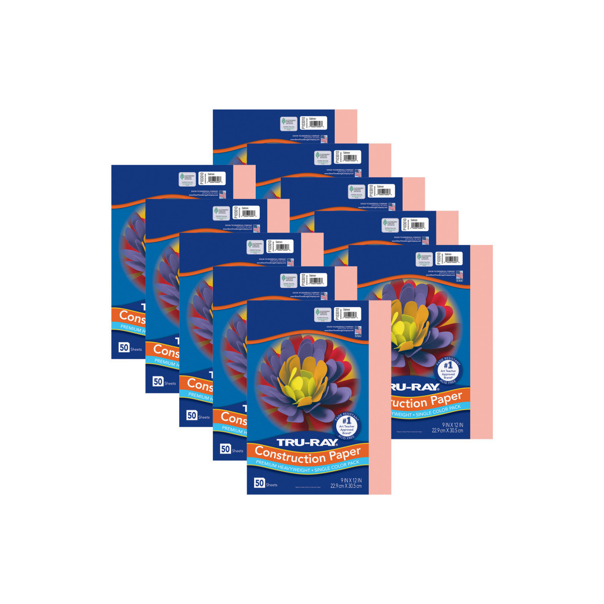 Tru-Ray® Construction Paper, Heavyweight, Salmon, 9" x 12", 50 Sheets Per Pack, 10 Packs