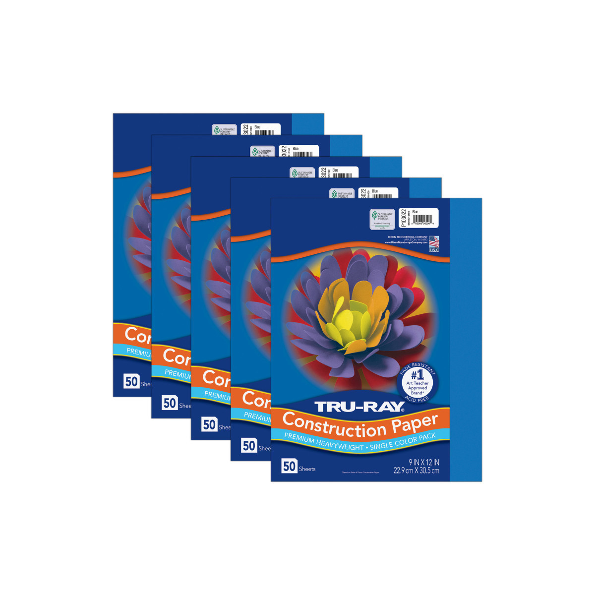 Tru-Ray® Construction Paper, Heavyweight, Blue, 9" x 12", 50 Sheets Per Pack, 5 Packs