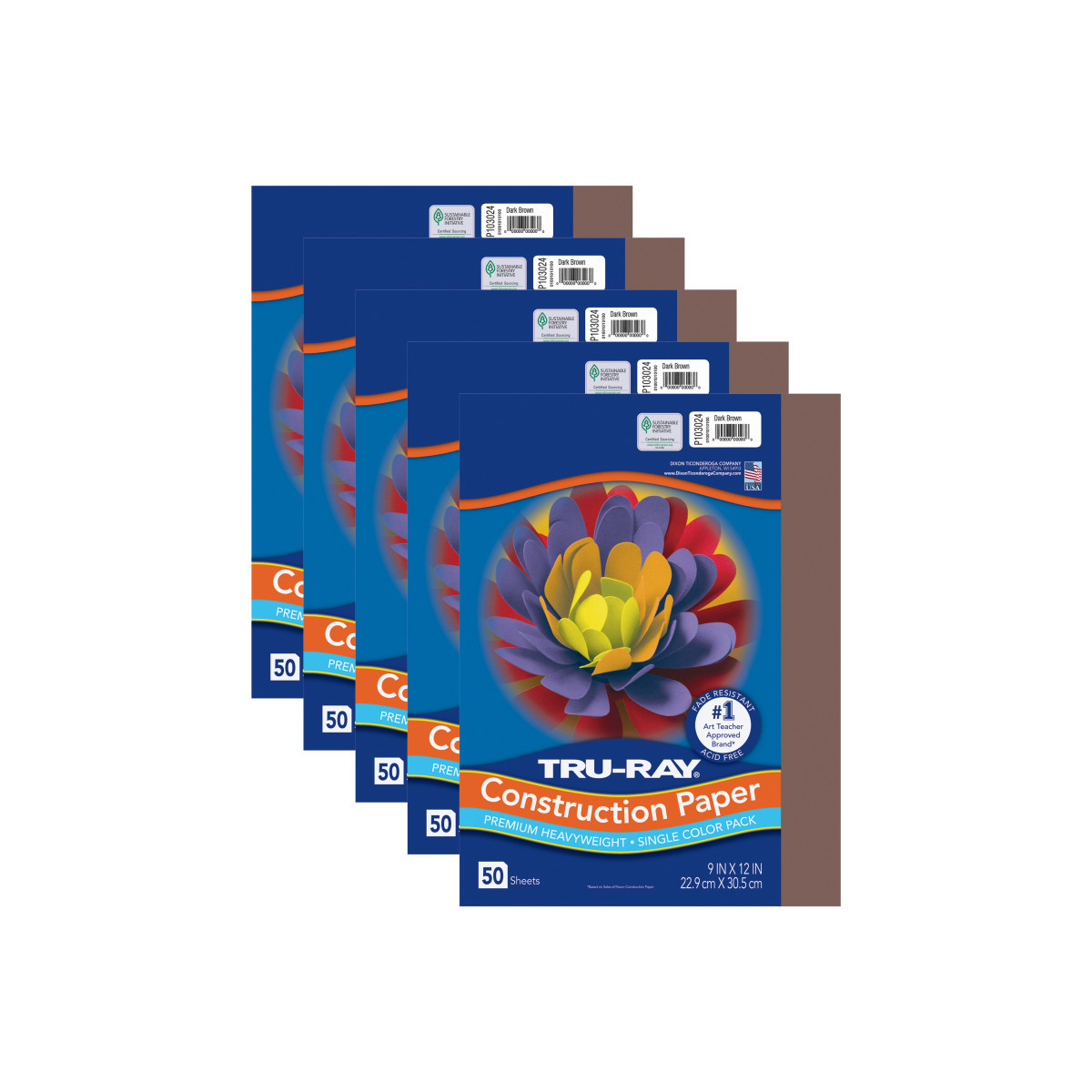 Tru-Ray® Construction Paper, Heavyweight, Dark Brown, 9" x 12", 50 Sheets Per Pack, 5 Packs