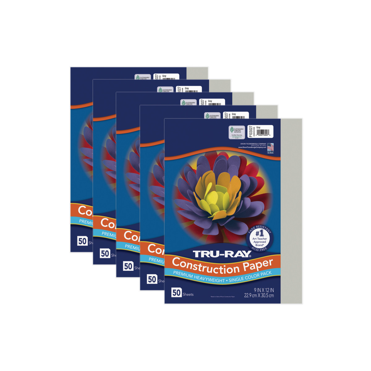 Tru-Ray® Construction Paper, Heavyweight, Gray, 9" x 12", 50 Sheets Per Pack, 5 Packs