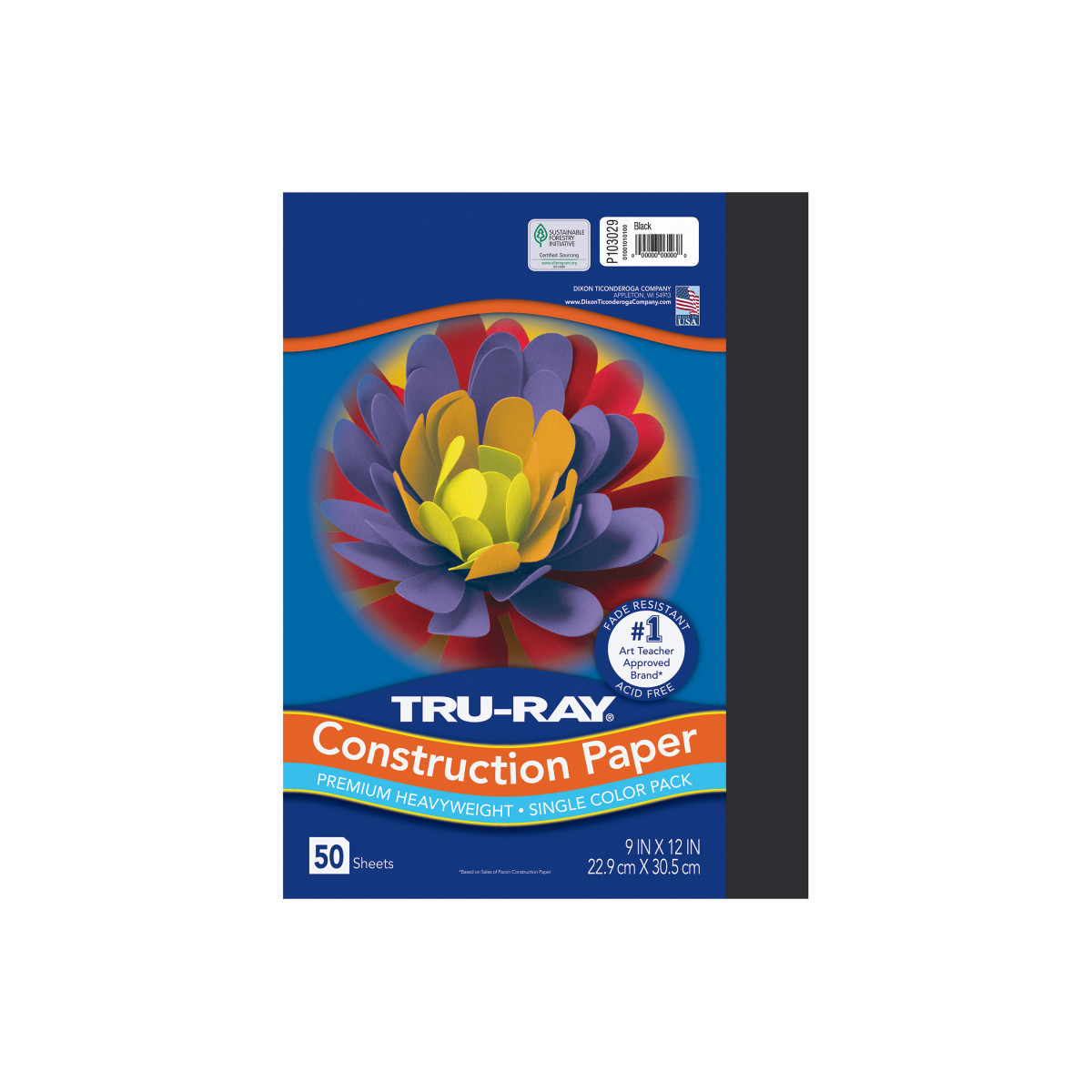 Tru-Ray® Construction Paper, Heavyweight, Black, 9" x 12", 50 Sheets
