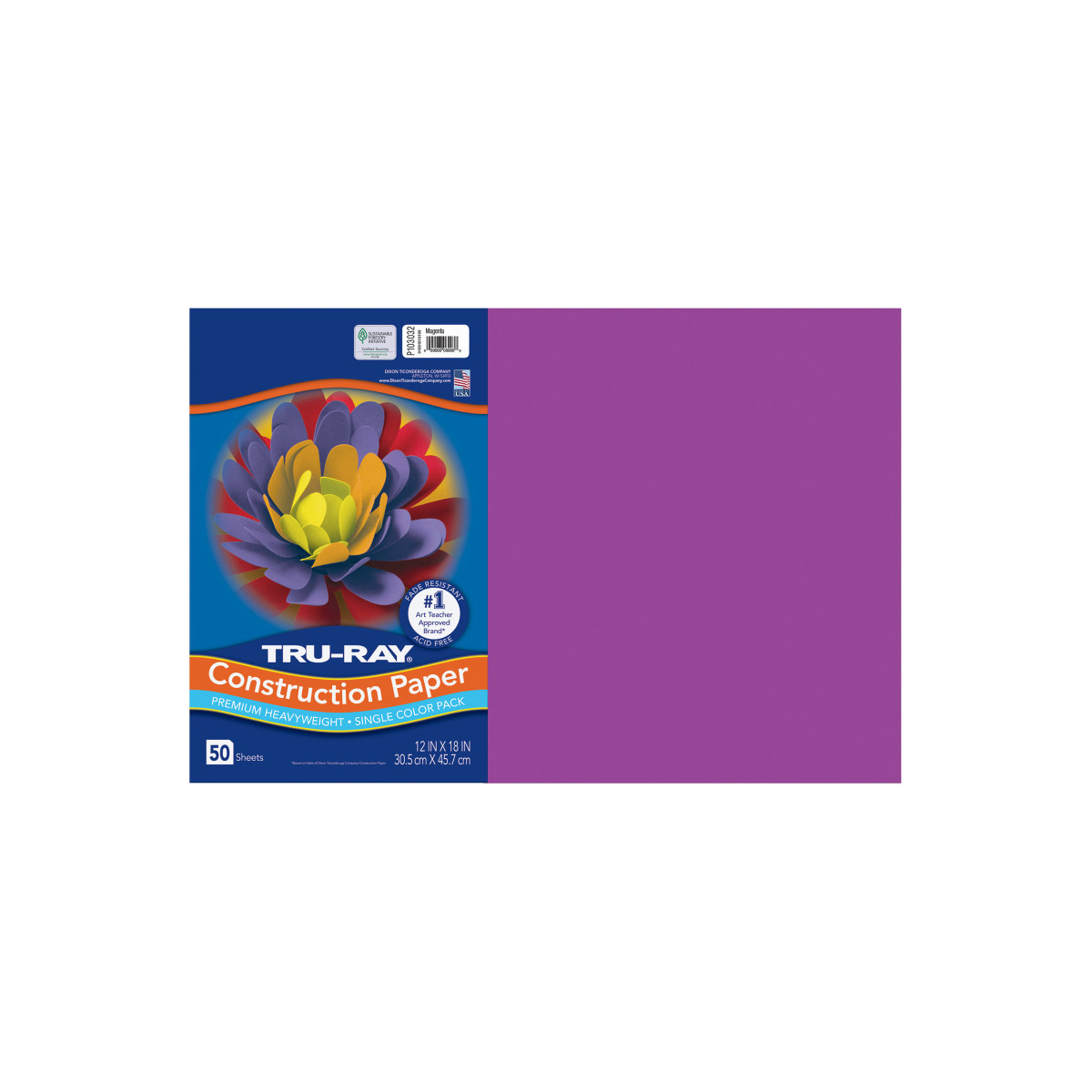 Heavyweight 100% vat-dyed sulphite with longer, stronger fibers. Tru-Ray® Construction Paper is tough enough to take scoring, folding and curling without cracking and tearing. Its superior fade-resistance keeps projects brighter and fresher longer. Available in 28 stay bright colors. Acid free for less fade. 50% recycled fiber content and recyclable. Measures 12" x 18". Each pack includes 50 sheets.