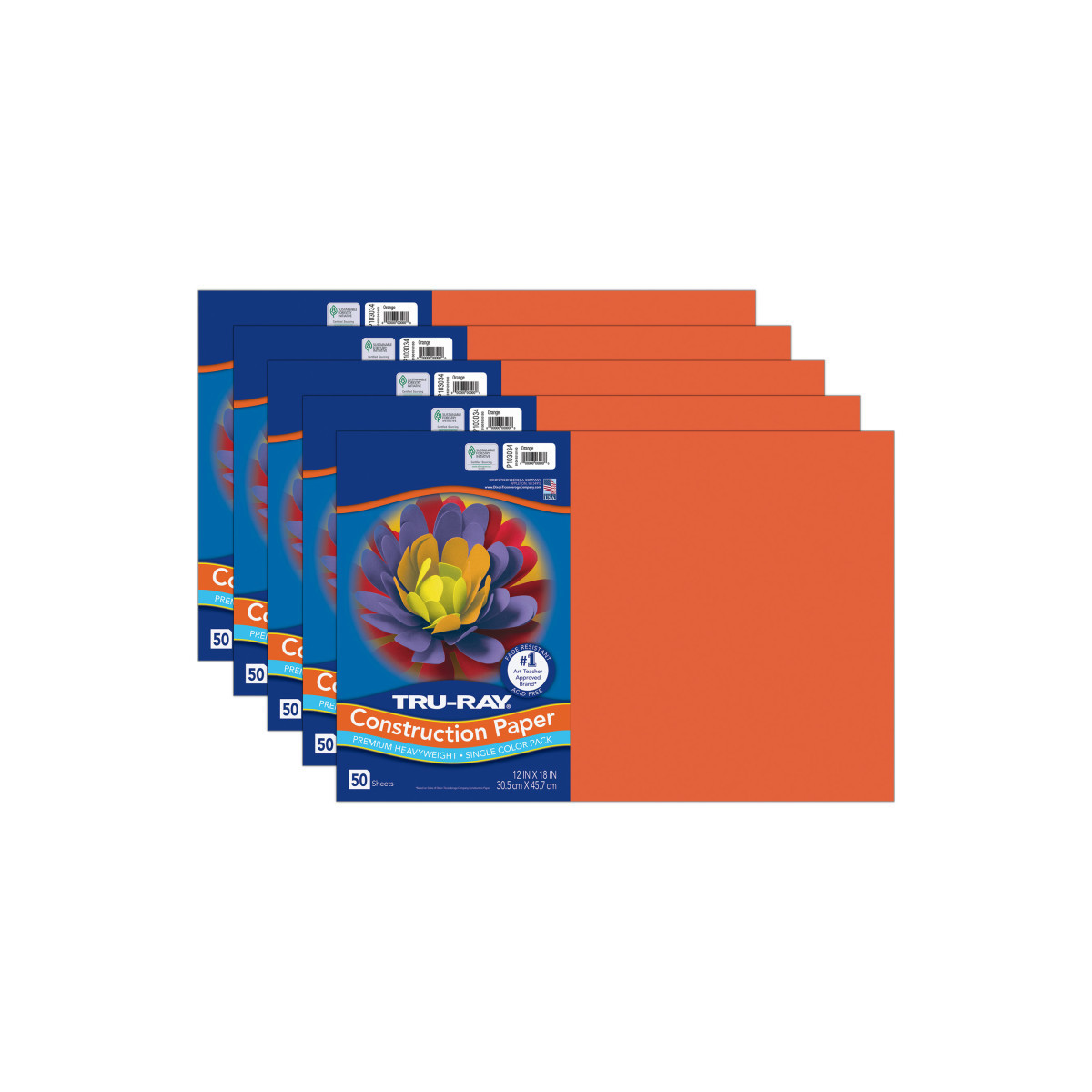 Tru-Ray® Construction Paper, Heavyweight, Orange, 12" x 18", 50 Sheets Per Pack, 5 Packs