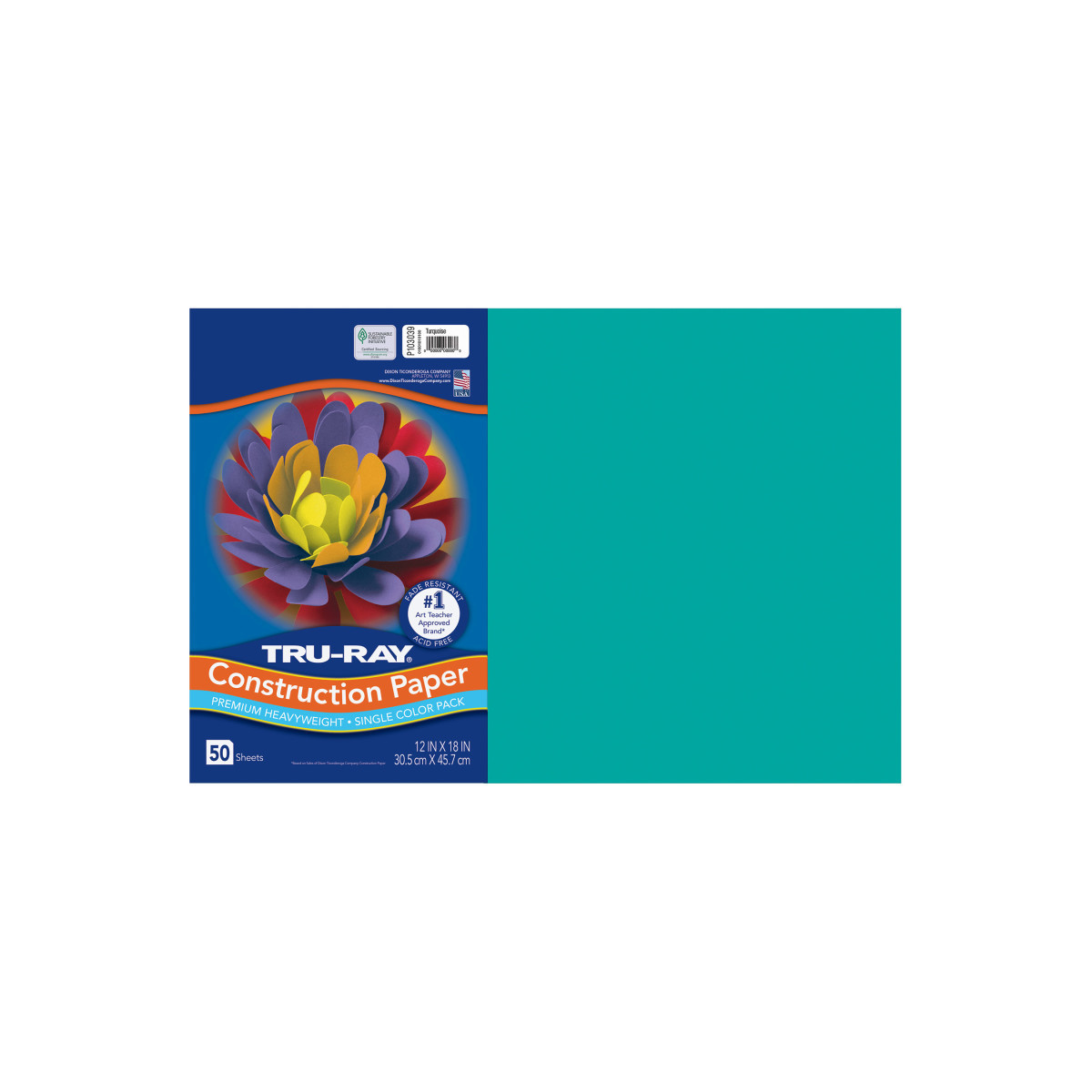 Tru-Ray® Construction Paper, Heavyweight, Turquoise, 12" x 18", 50 Sheets
