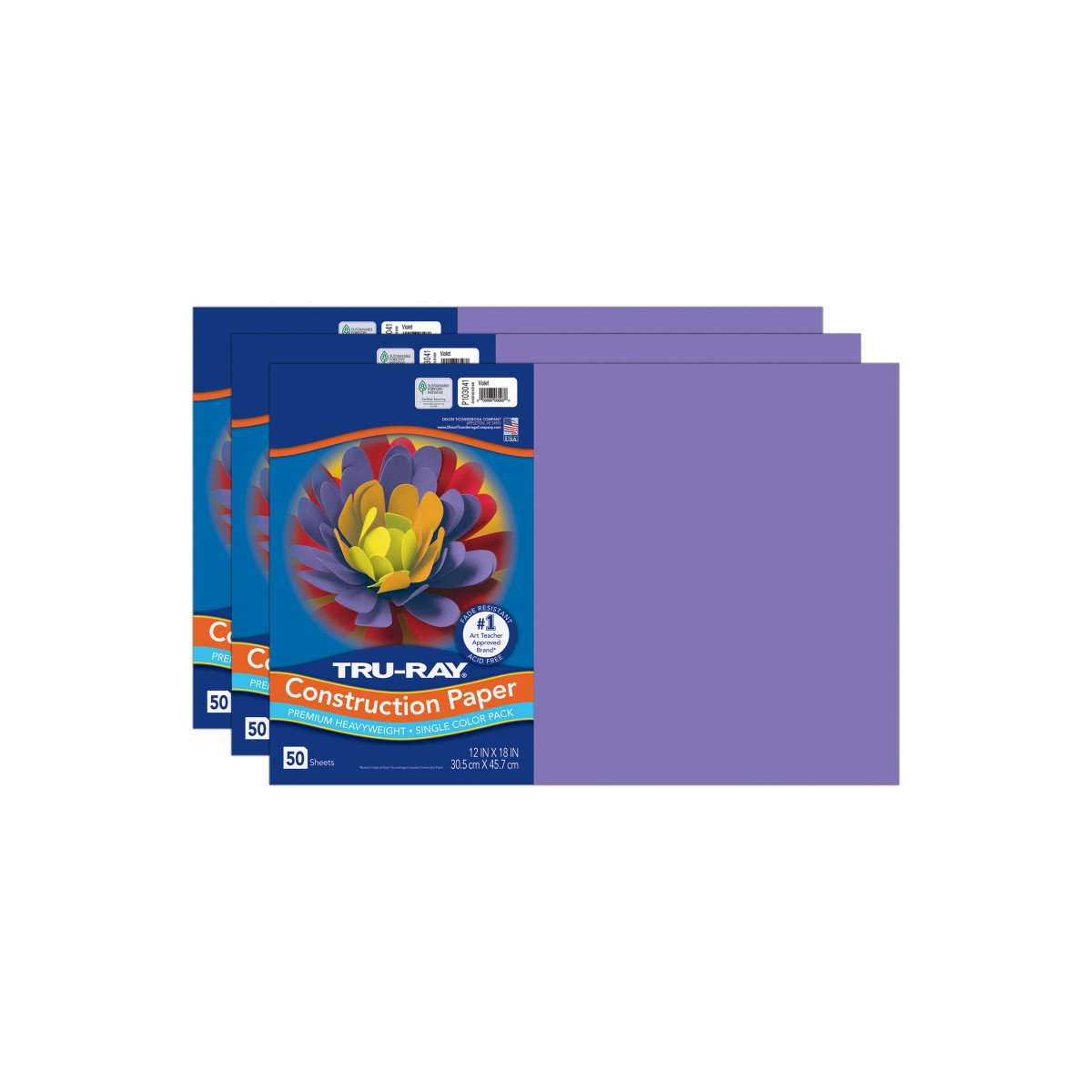 Tru-Ray® Construction Paper, Heavyweight, Violet, 12" x 18", 50 Sheets Per Pack, 3 Packs