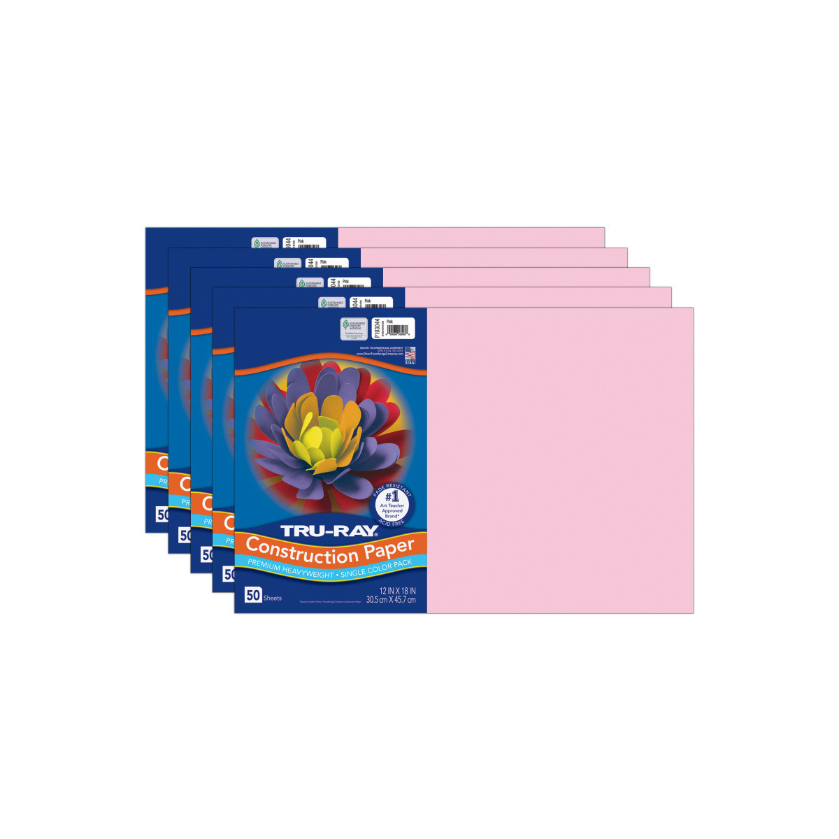 Heavyweight 100% vat-dyed sulphite with longer, stronger fibers. Tru-Ray® Construction Paper is tough enough to take scoring, folding and curling without cracking and tearing. Its superior fade-resistance keeps projects brighter and fresher longer. Available in 28 stay bright colors. Acid free for less fade. 50% recycled fiber content and recyclable. Measures 12" x 18". Each pack includes 50 sheets. Sold as 5 packs for a total of 250 sheets.