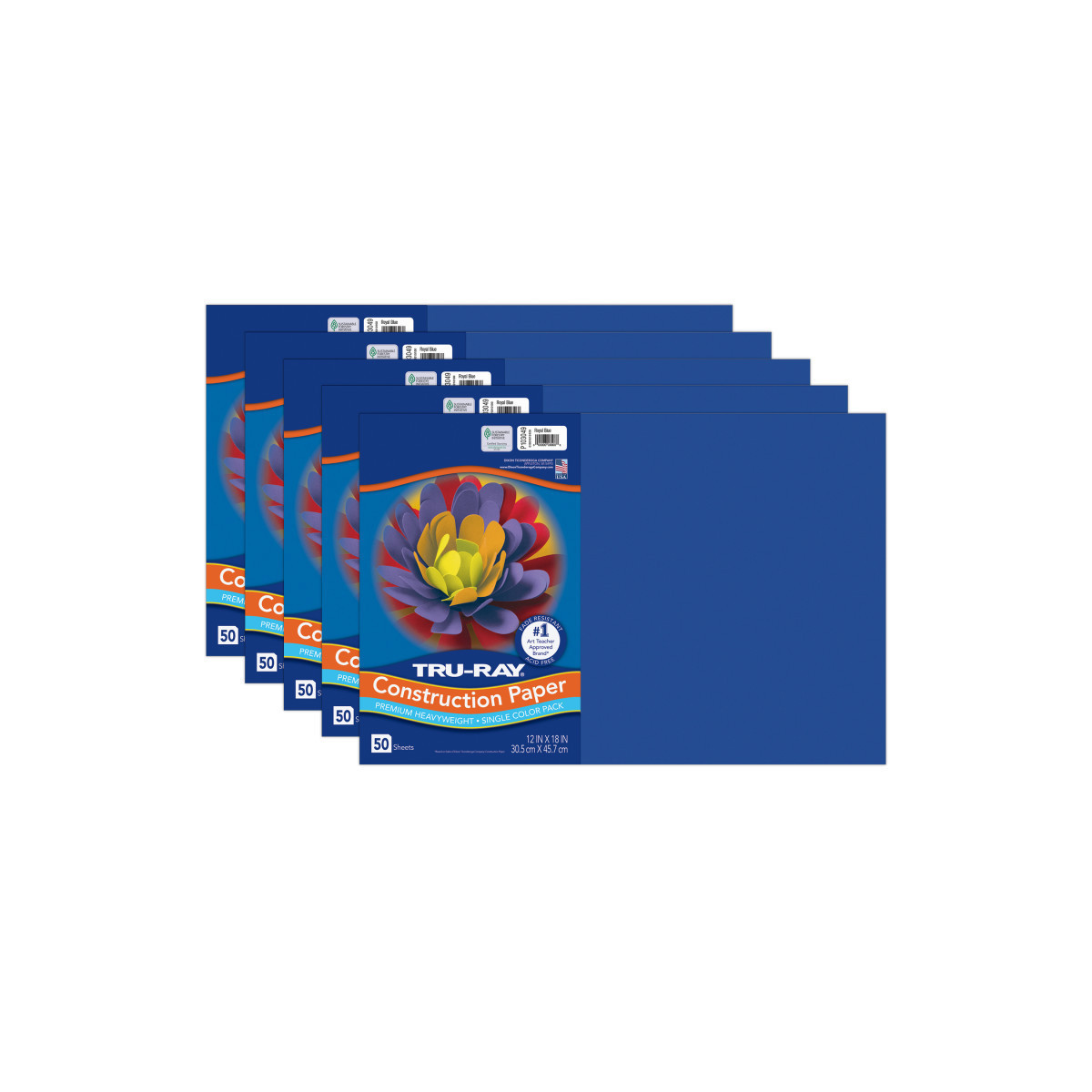 Tru-Ray® Construction Paper, Heavyweight, Royal Blue, 12" x 18", 50 Sheets Per Pack, 5 Packs