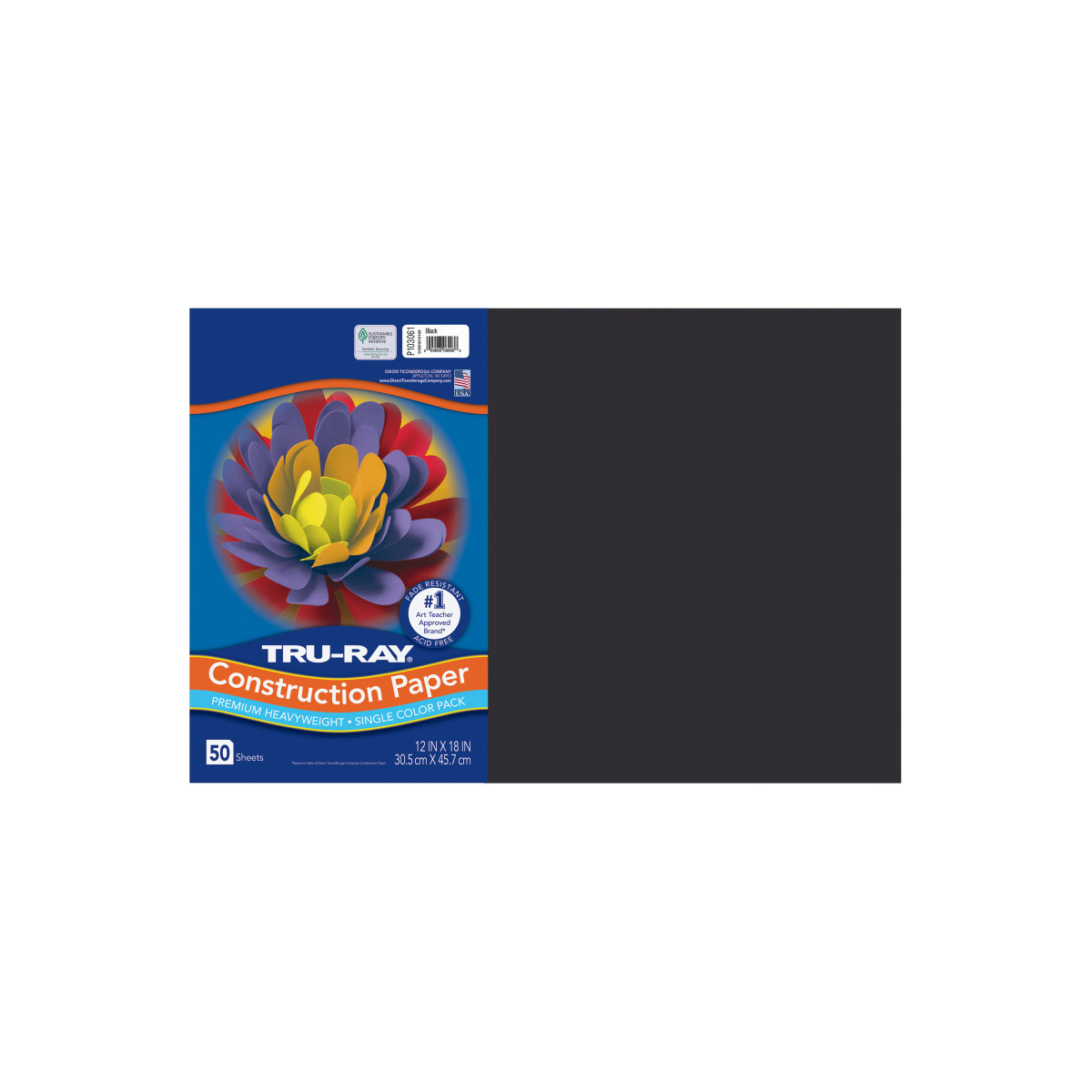 Tru-Ray® Construction Paper, Heavyweight, Black, 12" x 18", 50 Sheets
