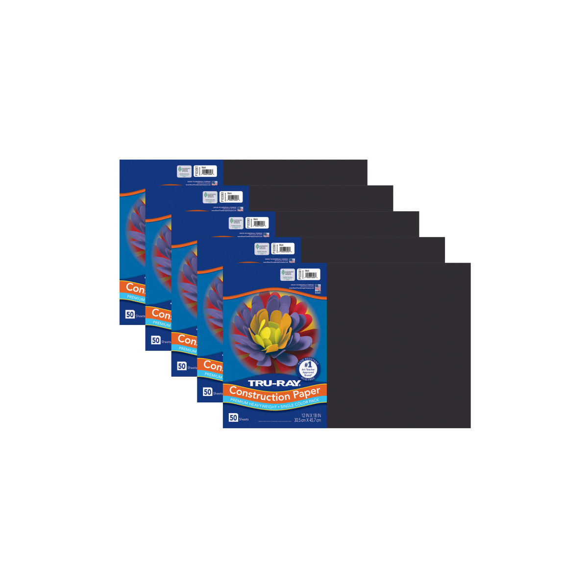 Tru-Ray® Construction Paper, Heavyweight, Black, 12" x 18", 50 Sheets Per Pack, 5 Packs