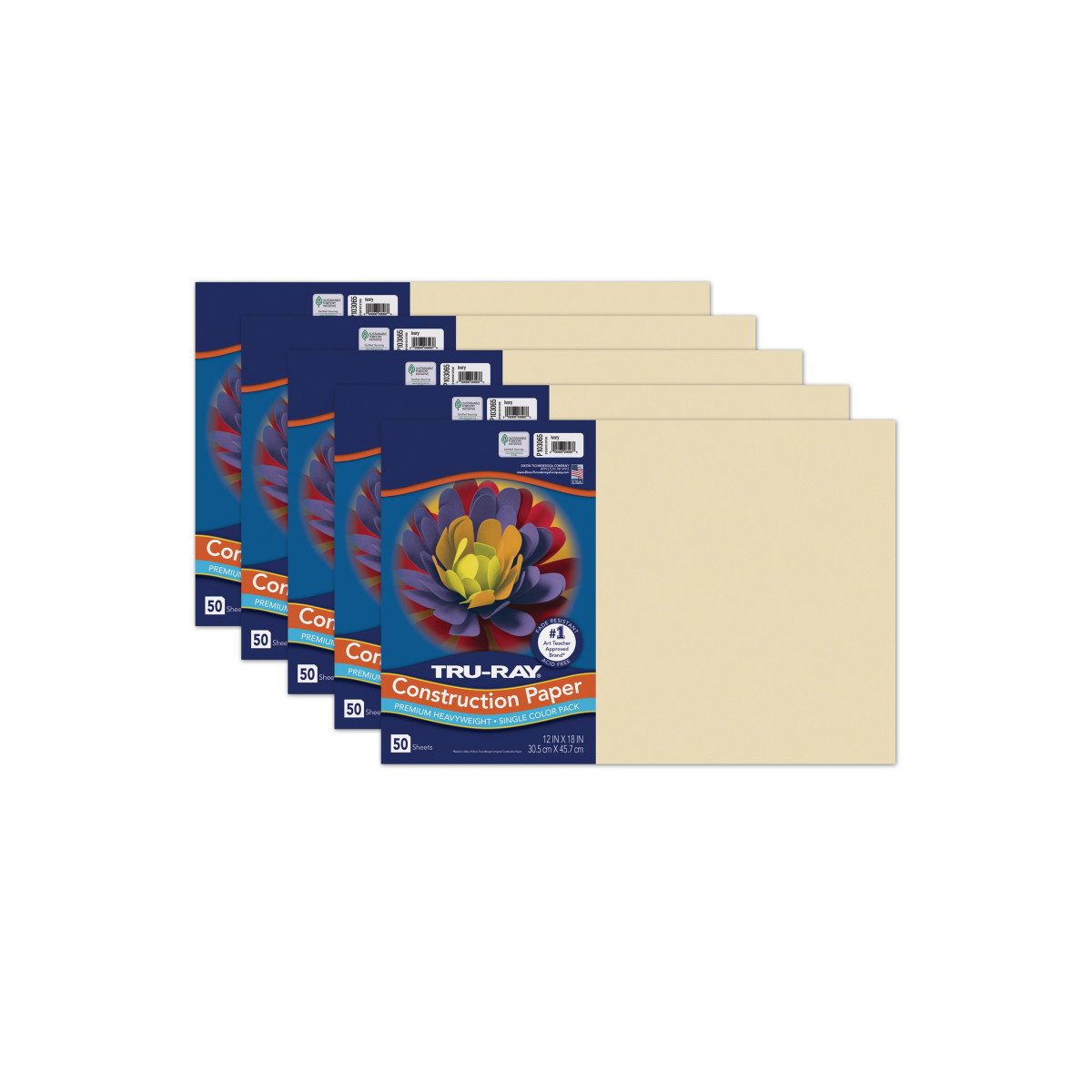 Tru-Ray® Construction Paper, Heavyweight, Ivory, 12" x 18", 50 Sheets Per Pack, 5 Packs