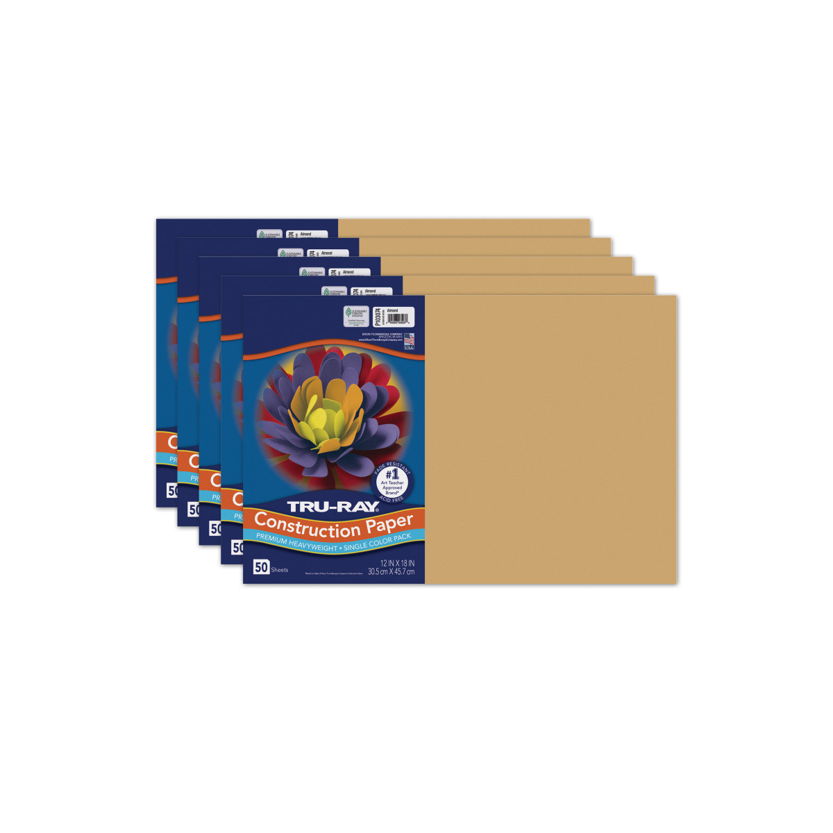 Tru-Ray® Construction Paper, Heavyweight, Almond, 12" x 18", 50 Sheets Per Pack, 5 Packs