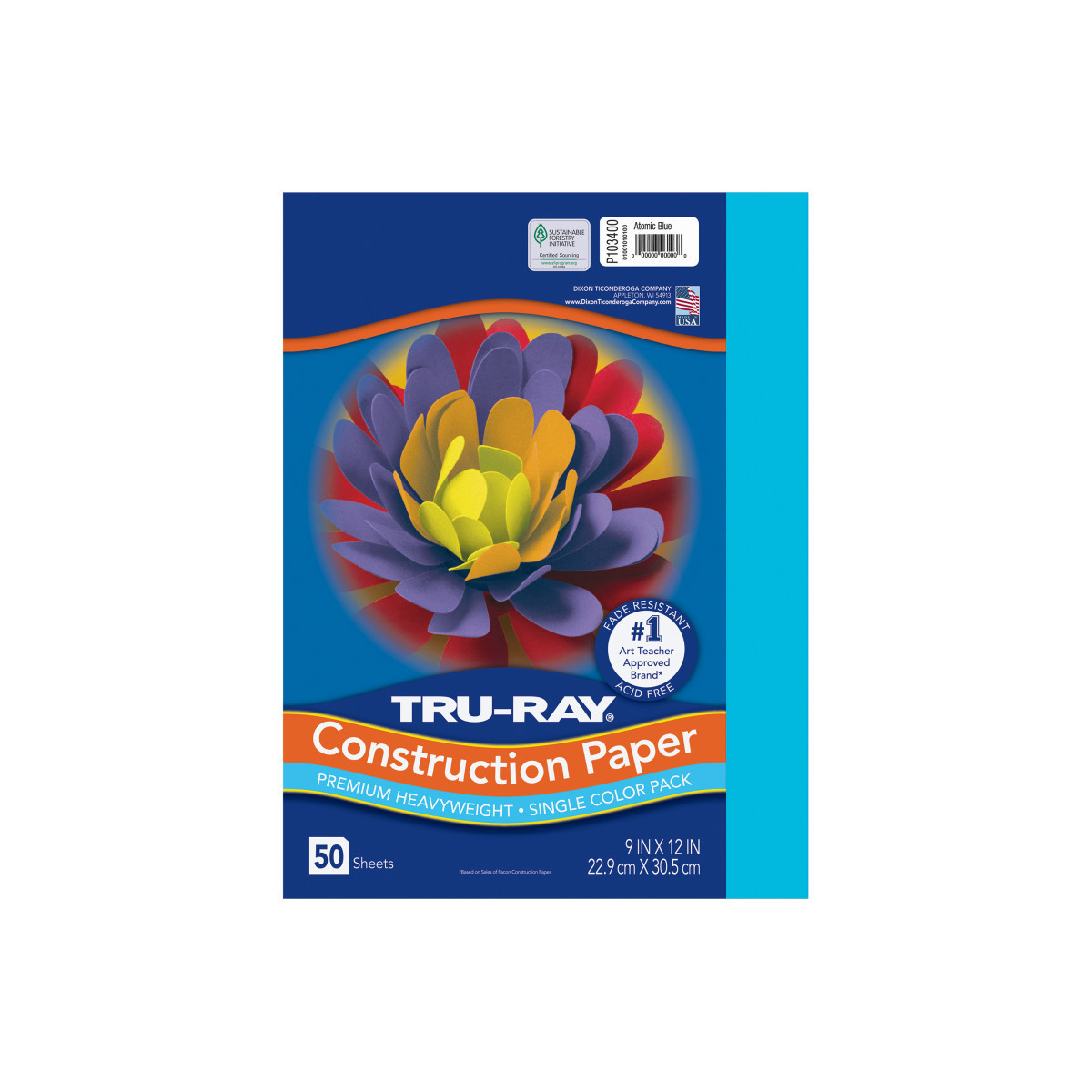Tru-Ray® Construction Paper, Heavyweight, Atomic Blue, 9" x 12", 50 Sheets