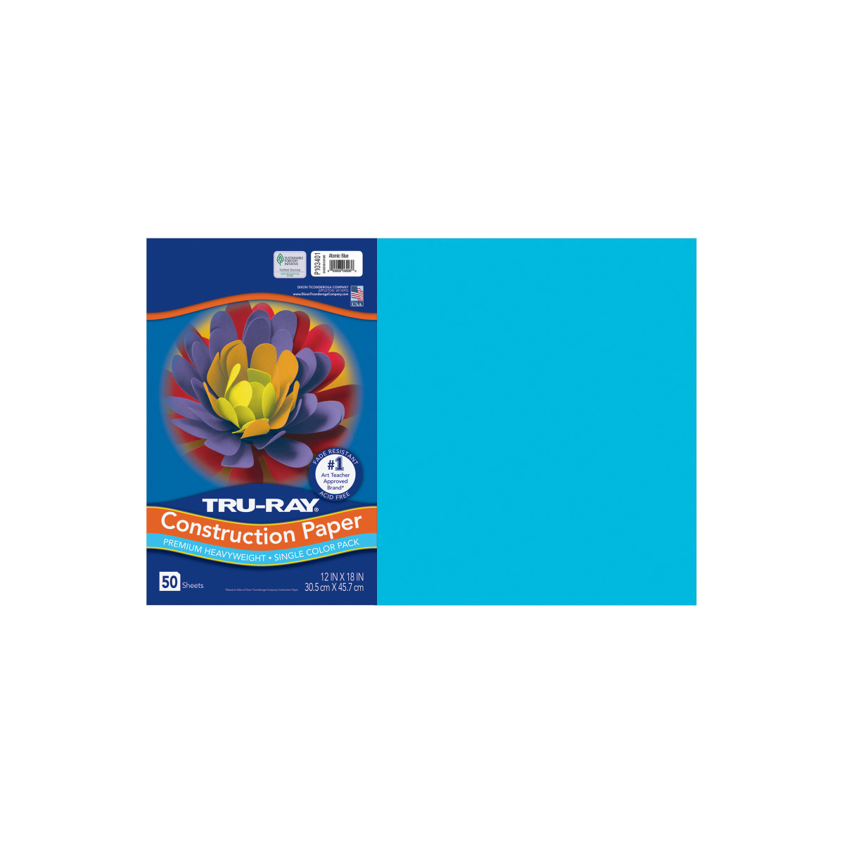 Tru-Ray® Construction Paper, Heavyweight, Atomic Blue, 12" x 18", 50 Sheets