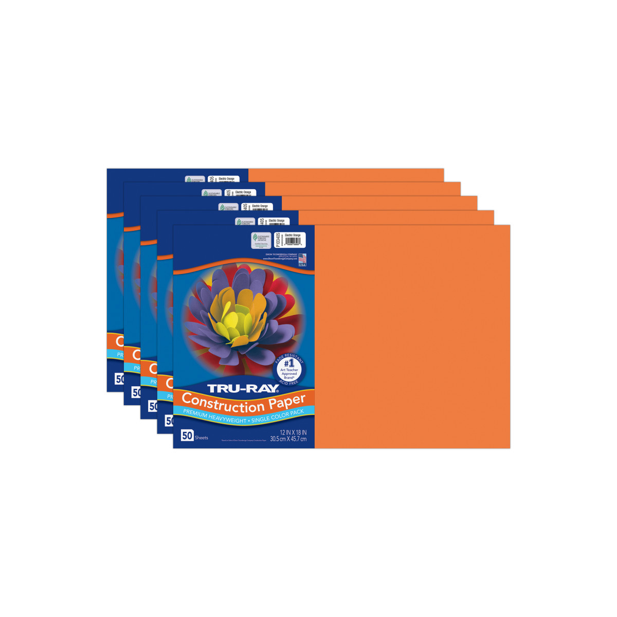 Tru-Ray® Construction Paper, Heavyweight, Electric Orange, 12" x 18", 50 Sheets Per Pack, 5 Packs