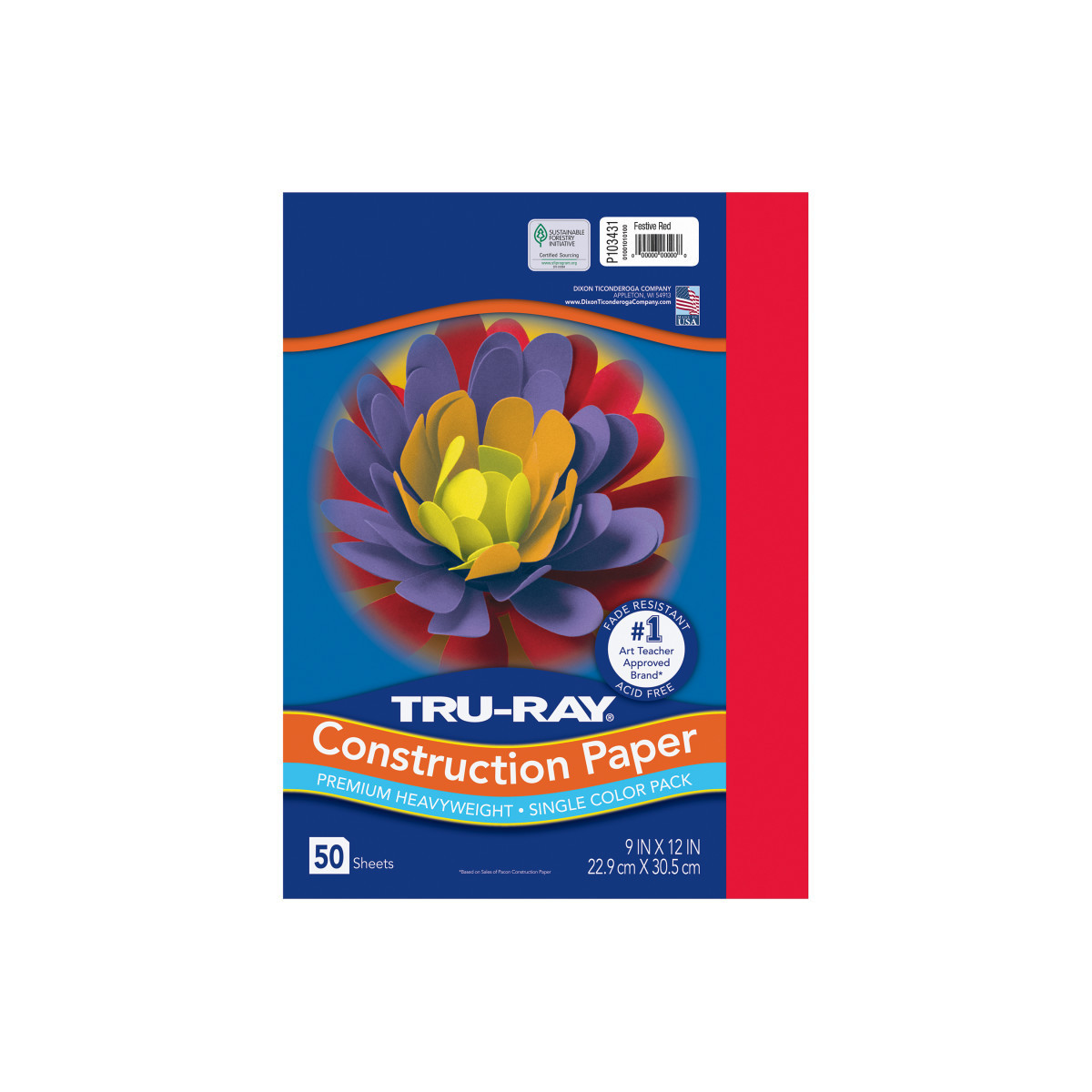 Heavyweight 100% vat-dyed sulphite with longer, stronger fibers. Tru-Ray® Construction Paper is tough enough to take scoring, folding and curling without cracking and tearing. Its superior fade-resistance keeps projects brighter and fresher longer. Available in 28 stay bright colors. Acid free for less fade. 50% recycled fiber content and recyclable. Measures 9" x 12". Each pack includes 50 sheets.