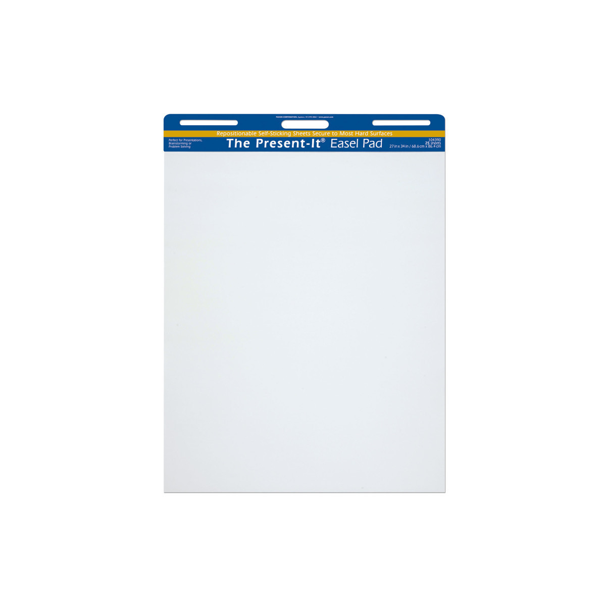 Self-adhesive sheets are perfect for presentations, brainstorming or problem solving exercises. Sheets are bleed-through resistant, pull off easily and stick securely to most hard surfaces. No tape, tacks or staples needed. Remove or reposition without leaving residue behind. Works great for classroom anchor charts. Includes a convenient handle for easy transportation. Recyclable. Measures 27" x 34". Each easel pad includes 25 sheets.