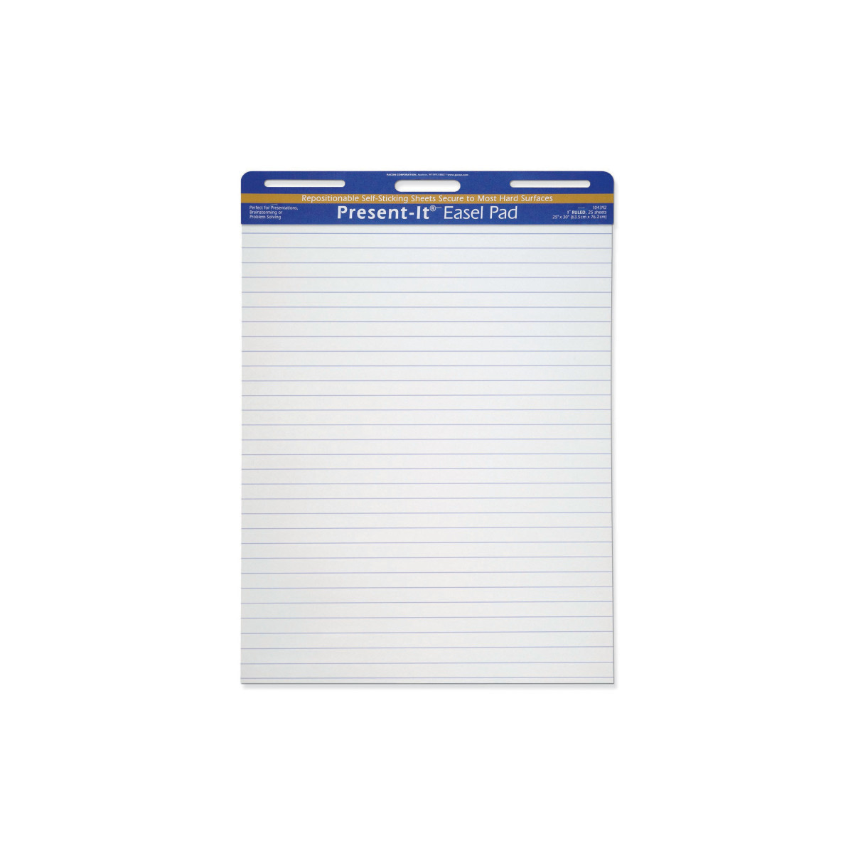 Self-adhesive sheets are perfect for presentations, brainstorming or problem solving exercises. Sheets are bleed-through resistant, pull off easily and stick securely to most hard surfaces. No tape, tacks or staples needed. Remove or reposition without leaving residue behind. Works great for classroom anchor charts. Includes a convenient handle for easy transportation. Recyclable. 1" ruled. Includes 25 sheets per pad. Recyclable. Measures 25" x 30".
