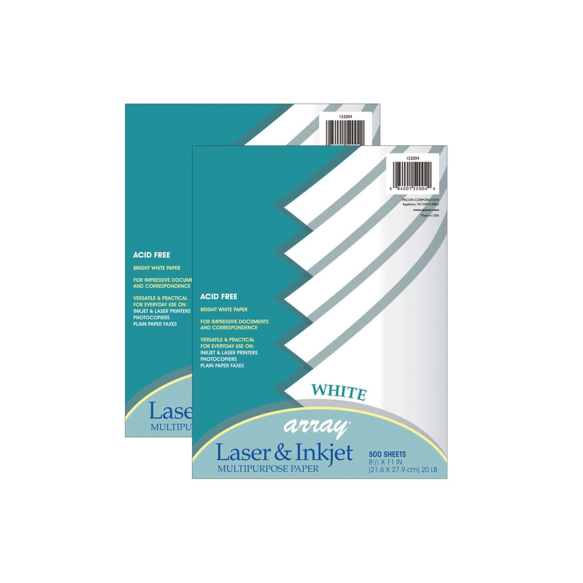 Multi-purpose 20 lb. paper compatible with copiers and laser and inkjet printers. Packages come film wrapped with an attractive top sheet. Recyclable. Paper measures 8.5" x 11". Each pack includes 500 sheets. Sold as 2 packs for a total of 1000 sheets.