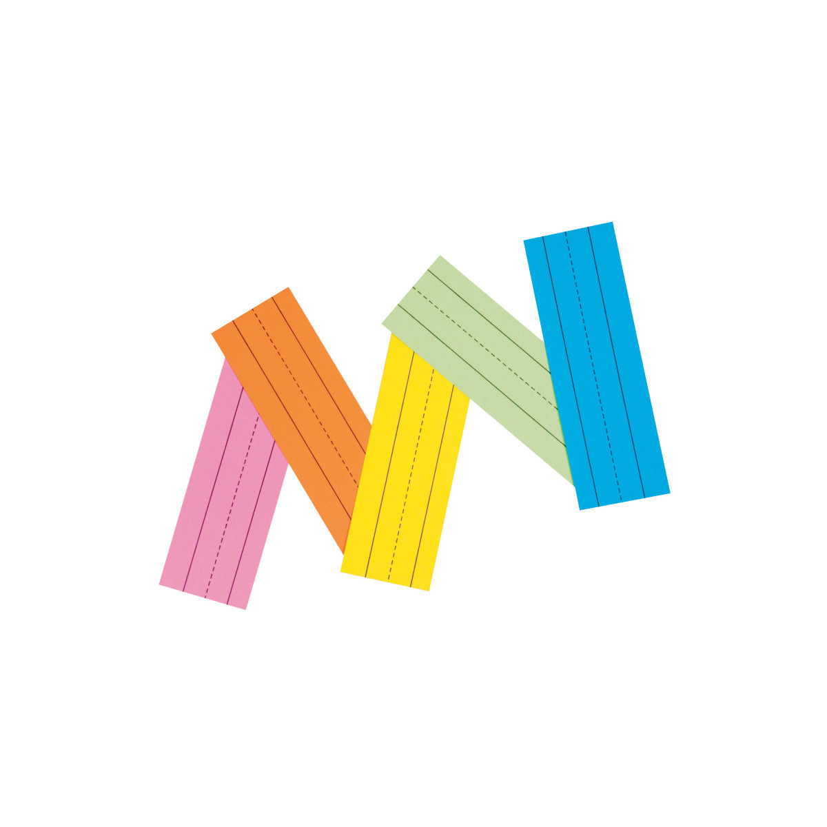 Sturdy tagboard stock has 1-1/2" ruling with 3/4" dotted midline on one side and a single line ruled on the opposite side. Assorted colors include: Hot Pink, Hot Orange, Hot Yellow, Hot Lime and Hot Blue. Packages are film wrapped. Recyclable. Each pack includes 100 flash cards. Measures 3" x 9".