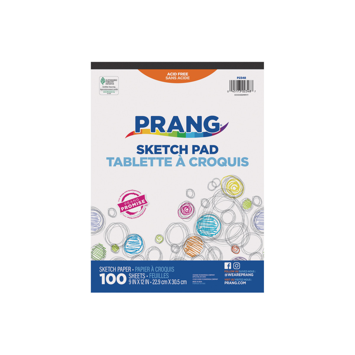 Prang® is great for young artists. This sketch pad contains more sheets than the normal sketch pad making it a great value. Sketch paper inside is perfect for use with dry media. Tape bound with a sturdy chipboard back. Great for pencil, colored pencil, pen or crayon. Acid free and recyclable. Each sketch pad includes 100 sheets of paper.