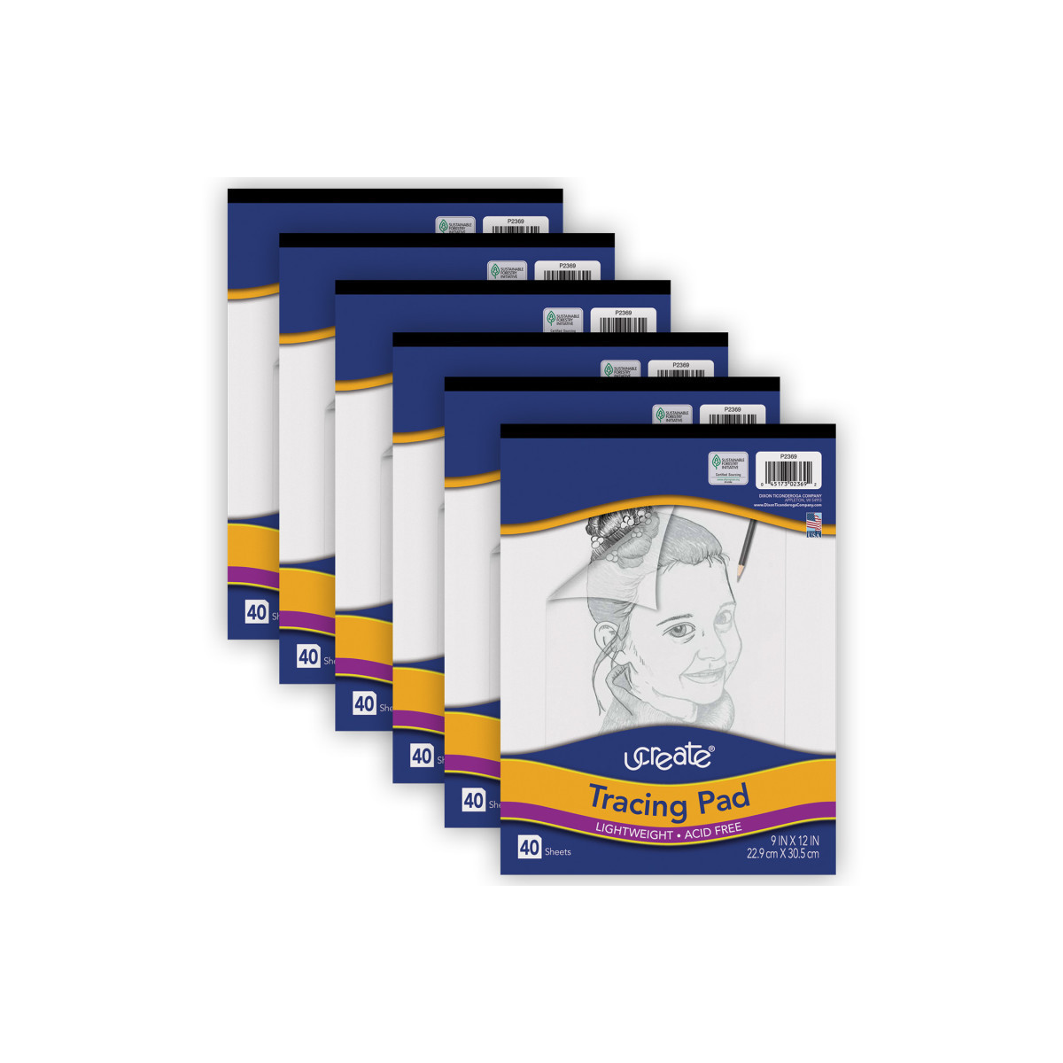 Standard grade transparent paper in pad format that can be used for sketches and overlays. Good transparent qualities and it will accept pencil, marker, and ink. Acid free and recyclable. Each pad includes 40 sheets. Measures 9" x 12". Sold as 6 pads.