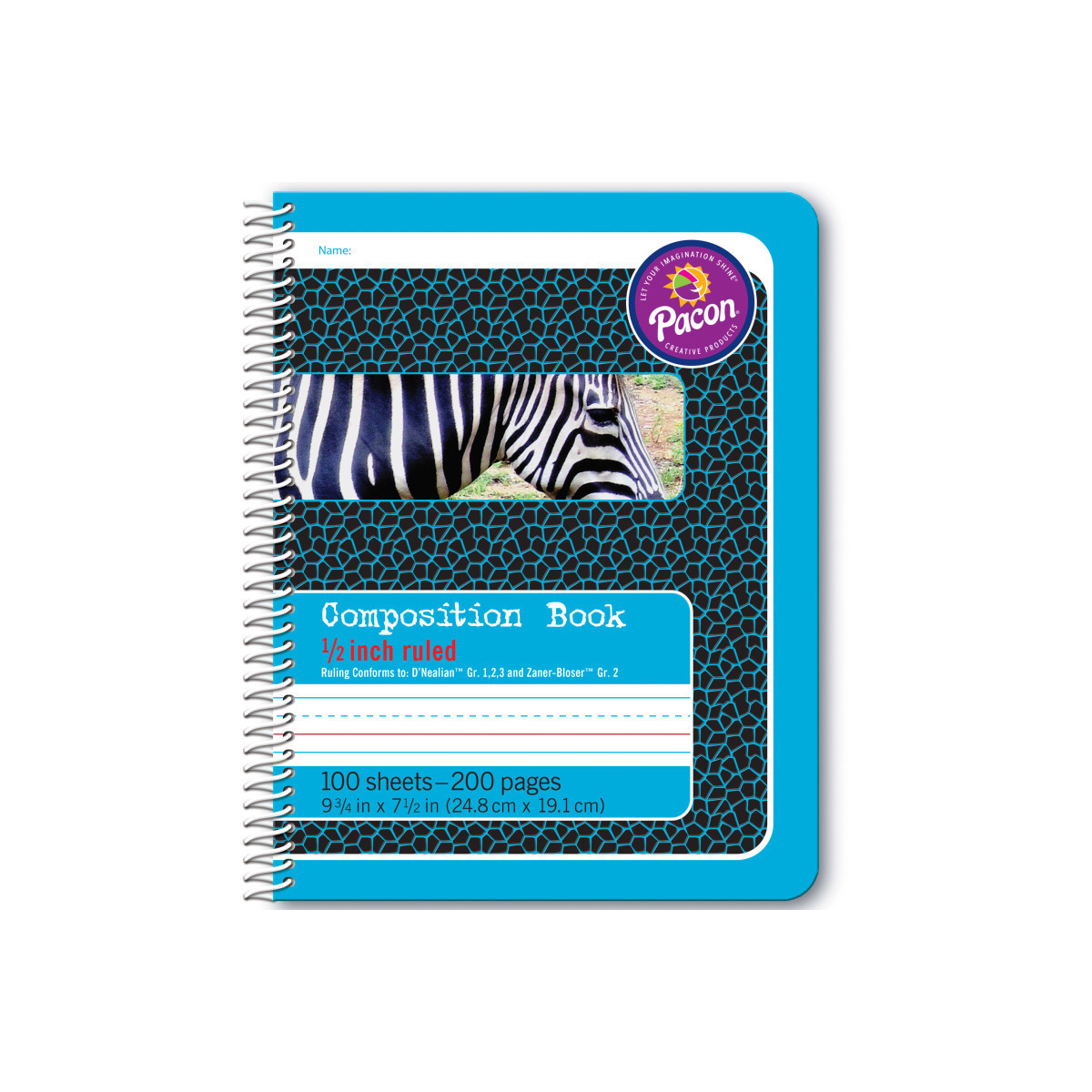 These books help track students' handwriting progress. Colorful distinctive covers make it easy to find the grade level and ruling you are looking for. Inside front cover is printed with the alphabet. Spiral bindings help the book lay flat for note taking. Rulings conform to D'Nealian® (Grades 1, 2 and 3); Zaner-Bloser™ (Grade 2) handwriting styles. Books contains 100 sheets or 200 pages. Ruled: 1/2". Dotted Midline: 1/4". Skip Space: 1/4". Measures 9.75" x 7.5".
