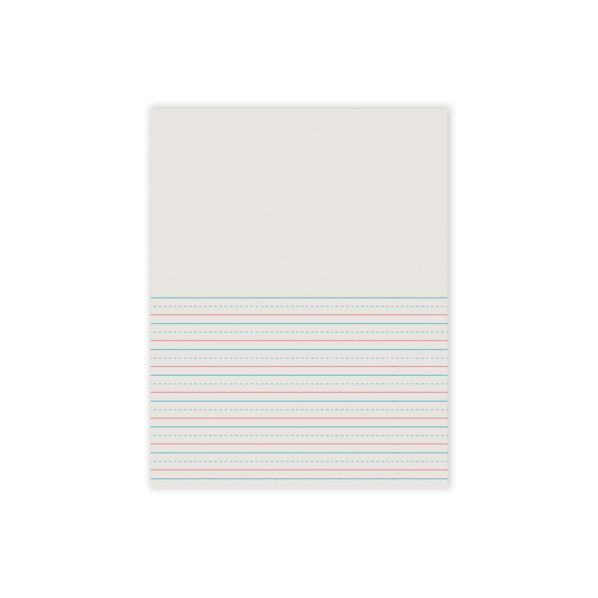 Clean White newsprint that's 1/2" ruled on both sides with 1/4" blue dotted midline, red baseline and 1/4" skip space