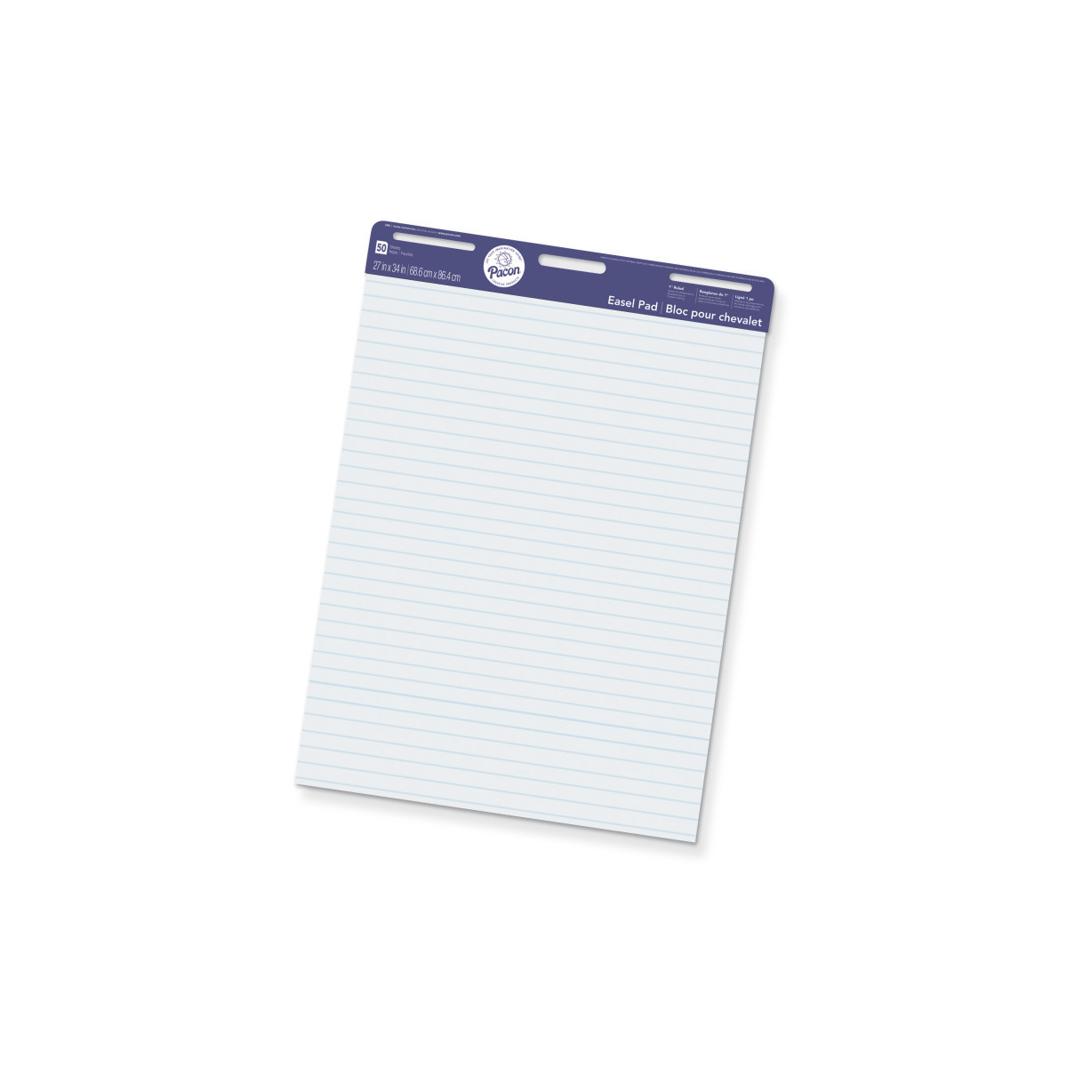This pad works great for meetings, presentations and classroom anchor charts. This pad contains high quality white sulphite bond paper, 1" ruled on one side, and a convenient carrying handle for easy transportation. An extra heavy chipboard back provides a durable writing surface. Measures 27" x 34". Includes 50 sheets.