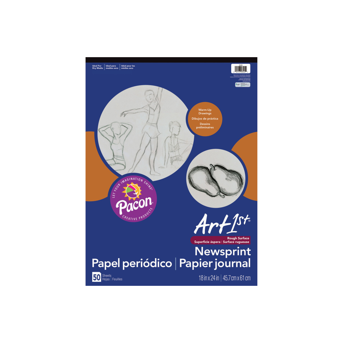 Standard grade, high bulk White newsprint paper in a pad. Perfect for gesture and preliminary drawings, and has a versatile rough surface. Includes 50 sheets per pad. Measures 18" x 24".