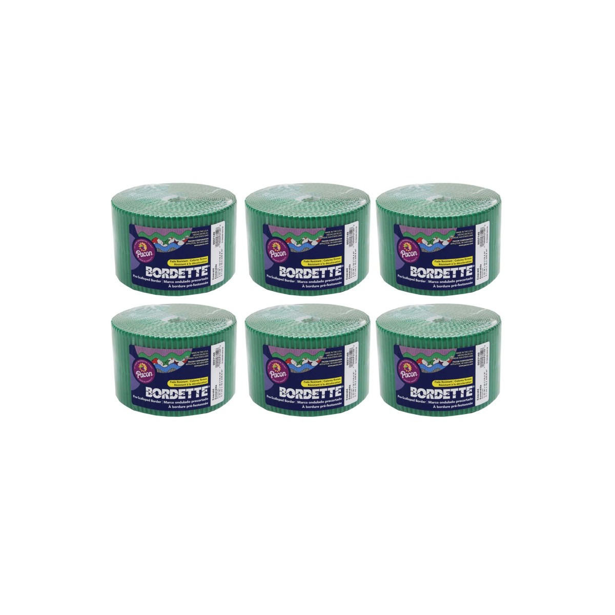 Bordette® is the original, pre-scalloped, fade-resistant decorative border. The sturdy corrugate provides a unique 3-dimensional appearance on any flat surface. It bends, molds, turns and twists to create unique layered designs. Packaged in a perforated roll, Bordette is easy to separate. It's easy to mix and match colors to create the perfect display. One 50' roll of Bordette will completely edge two 8' x 4' bulletin boards. Recyclable. Each roll includes 2.25" x 50'. Sold as a pack of 6 rolls.
