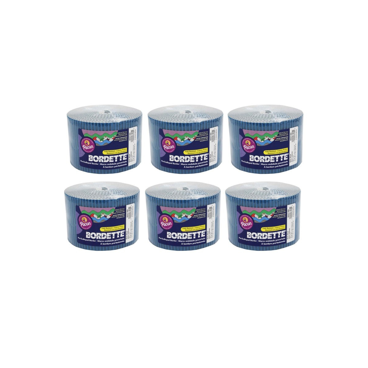 Bordette® is the original, pre-scalloped, fade-resistant decorative border. The sturdy corrugate provides a unique 3-dimensional appearance on any flat surface. It bends, molds, turns and twists to create unique layered designs. Packaged in a perforated roll, Bordette is easy to separate. It's easy to mix and match colors to create the perfect display. One 50' roll of Bordette will completely edge two 8' x 4' bulletin boards. Recyclable. Each roll includes 2.25" x 50'. Sold as a pack of 6 rolls.