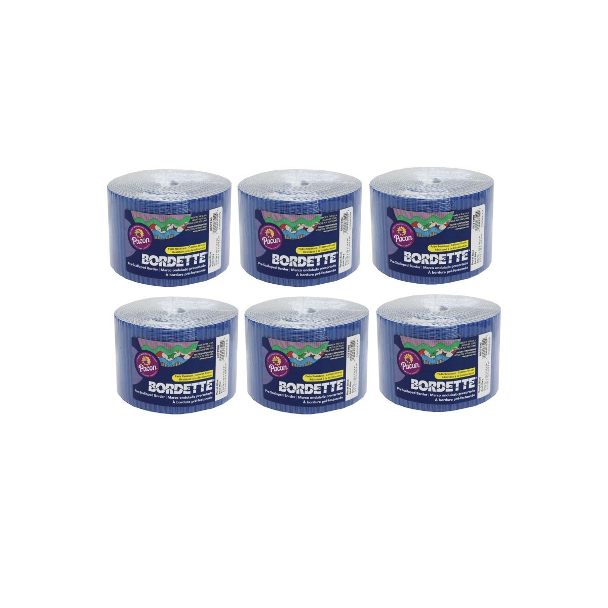 Bordette® is the original, pre-scalloped, fade-resistant decorative border. The sturdy corrugate provides a unique 3-dimensional appearance on any flat surface. It bends, molds, turns and twists to create unique layered designs. Packaged in a perforated roll, Bordette is easy to separate. It's easy to mix and match colors to create the perfect display. One 50' roll of Bordette will completely edge two 8' x 4' bulletin boards. Recyclable. Each roll includes 2.25" x 50'. Sold as a pack of 6 rolls.