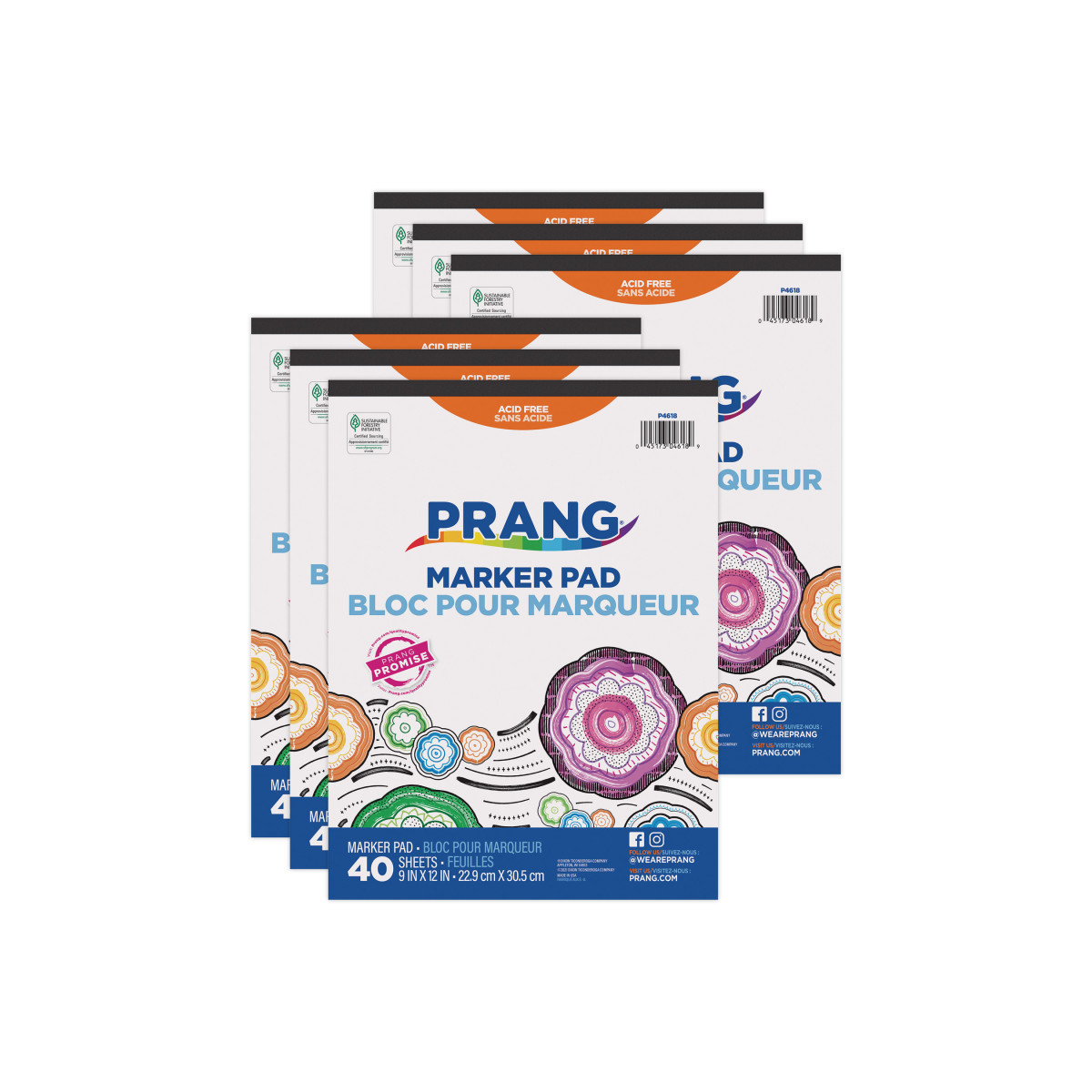 White paper pad is great for use with washable and regular markers, as well as watercolor paints. Measures 9" x 12". Includes 40 sheets. Recyclable. Sold as a pack of 6 pads.