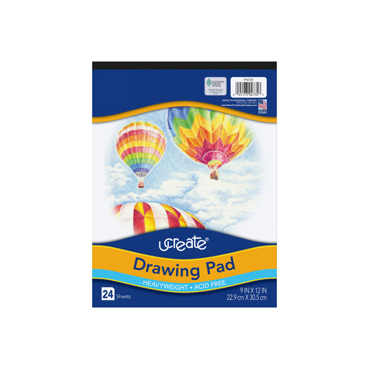 High quality Heavyweight White sulphite drawing paper in a pad format. Ideal for illustrations and final drawings. Includes 24 sheets per pad. Acid-free and Recyclable. Measures 9" x 12".