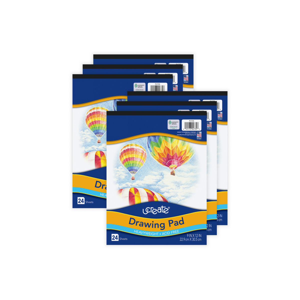 High quality Heavyweight White sulphite drawing paper in a pad format. Ideal for illustrations and final drawings. Includes 24 sheets per pad. Acid-free and Recyclable. Measures 9" x 12". Sold as a pack of 6 pads.