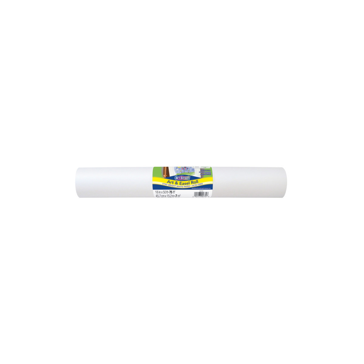 The perfect surface for young masterpieces! Stay-bright white paper that can be used on an easel, on a table or unrolled on the floor. For use with dry media. Roll has a 1" core. Easily dispenses from standard size dispensers. Recyclable. Measures 18" x 50'. Acid free and recyclable.