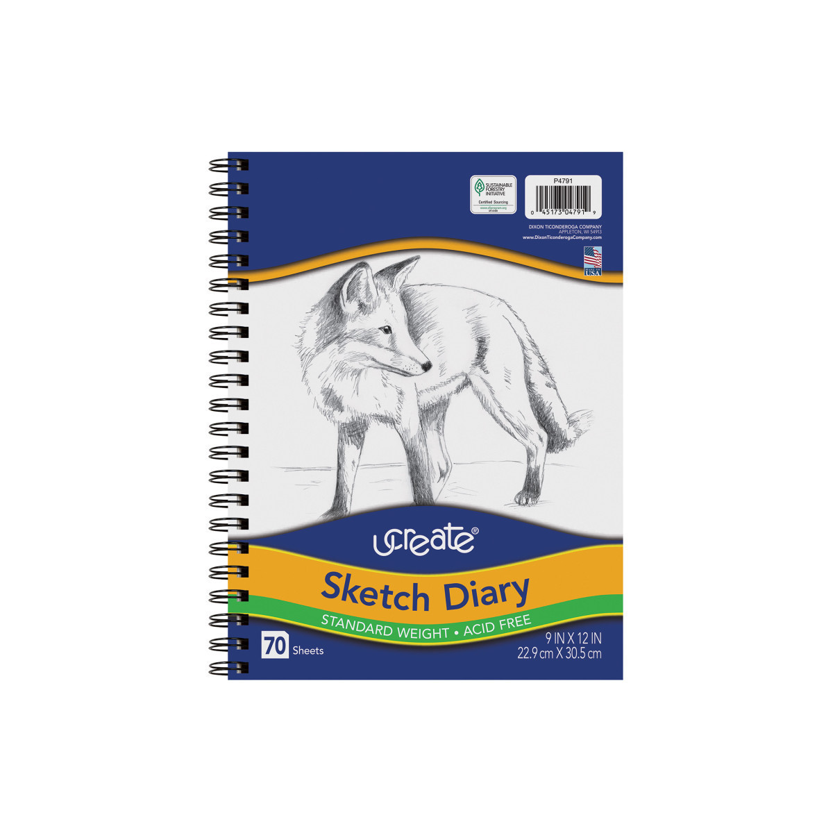 All-purpose lightweight White sulphite drawing paper spiral bound on the side. Perfect for quick study sketches and drawings. Ideal for all dry media. Acid-free and Recyclable. Measures 12" x 9". Includes 70 sheets.