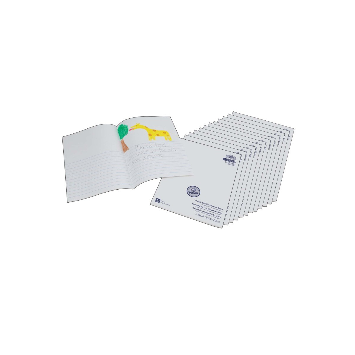 Economical sketch booklets are perfect for early childhood and elementary journaling, as well as interactive note taking. Stay bright White paper is ideal for dry media. These Booklets are ruled with a 7/8" ruling and a 5-1/8" picture story space on the top. Sheets are bound with a stapled binding. The blank cover allows each student to personalize their own booklet. Acid-free and recyclable. Measures 8.5" x 11". Each booklet includes 16 sheets. Sold as a pack of 12 booklets.