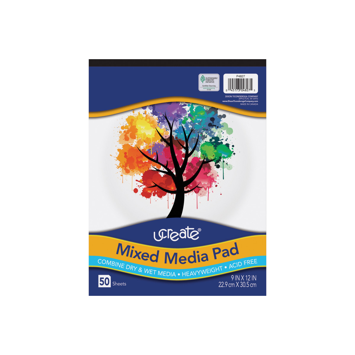 Extra sizing on this heavyweight mixed media paper makes it perfect for all types of media. Pad format includes heavy chipboard back and natural color and medium tooth sheets. Acid free. Measures 9" x 12". Each pad includes 50 sheets.