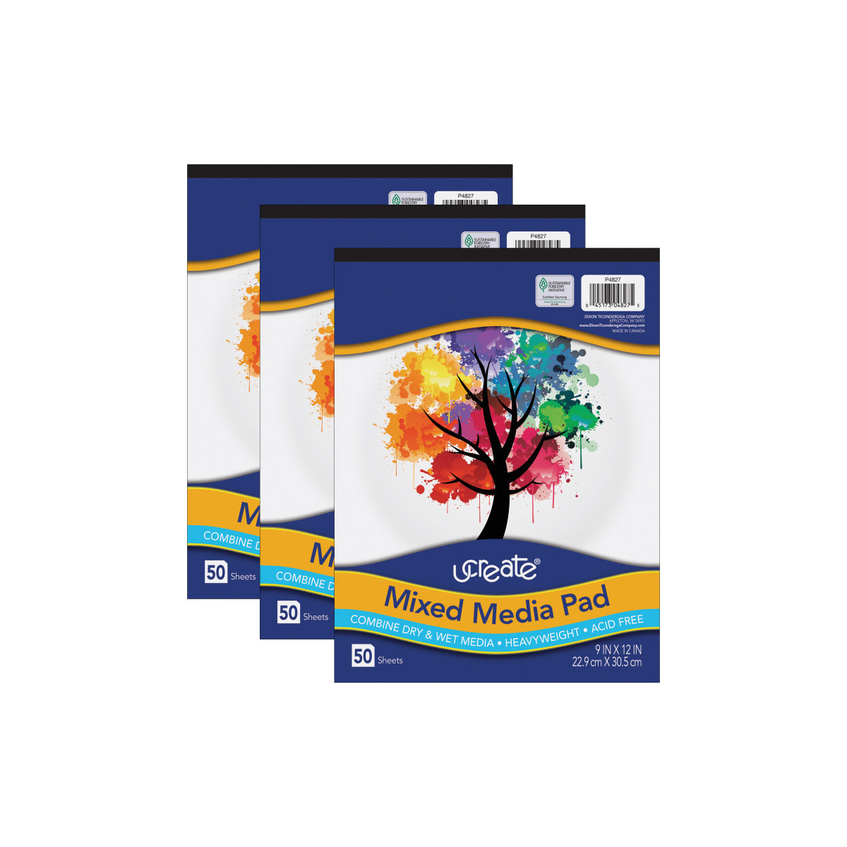 Extra sizing on this heavyweight mixed media paper makes it perfect for all types of media. Pad format includes heavy chipboard back and natural color and medium tooth sheets. Acid free. Measures 9" x 12". Each pad includes 50 sheets. Sold as a pack of 3 pads.