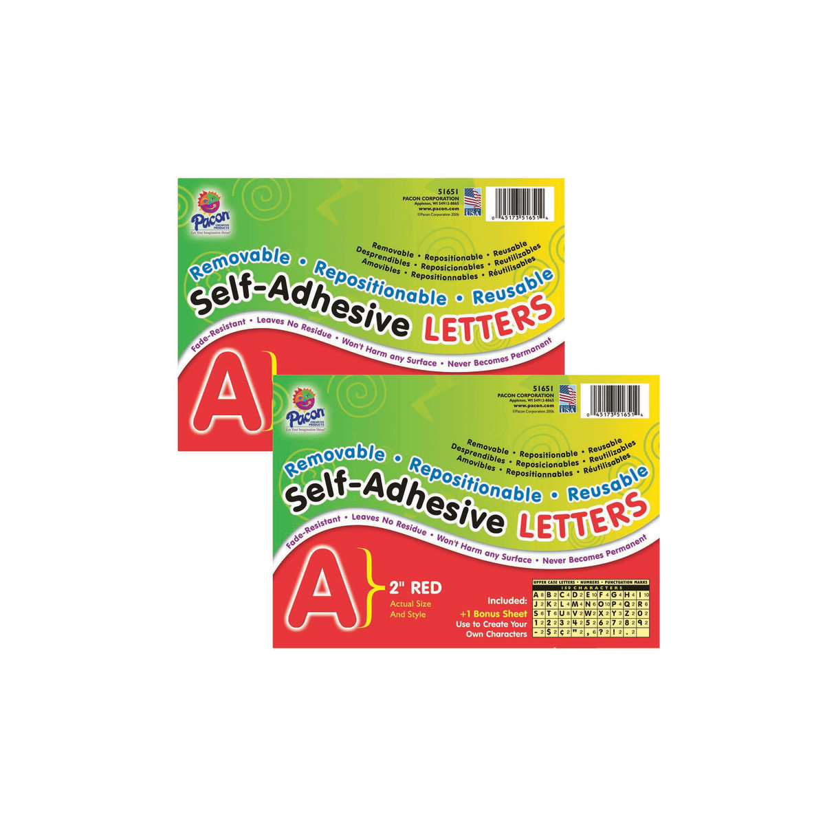 A unique adhesive makes these letters removable, repositionable and reusable. They are easy to use - just "peel and place". They adhere to any clean and dry surface that is smooth or slightly textured (even wood and painted brick walls). Fade-resistant, acid free, leaves no residue and never becomes permanent. Each package contains uppercase letters along with numbers and punctuation marks. Ideal for bulletin boards, signs, posters, presentation boards and much more. The 2" letters have 159 characters per pack. Sold as 2 packs for 318 characters total.