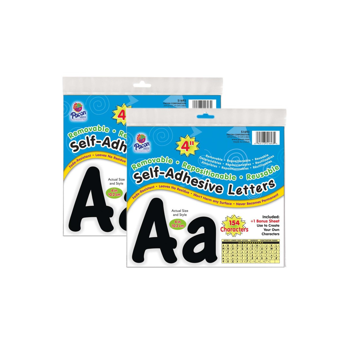Make your messages "come to life" and avoid the hassle of trying to create easy-to-read bulletin boards and signs on your own. These attractive, self-adhering letters come ready-to-use and adhere securely to any clean, dry surface - including glass, wood, and painted brick. They are durable, repositionable, and peel-off easily in most situations without leaving residue behind. The package contains letters, numbers, punctuation marks, and a blank page to create anything else you need! Ideal for posters, presentation boards, signs and window messages. Letters are fade-resistant and acid-free. Each pack includes 154 characters. Sold as 2 packs for a total of 308 characters.