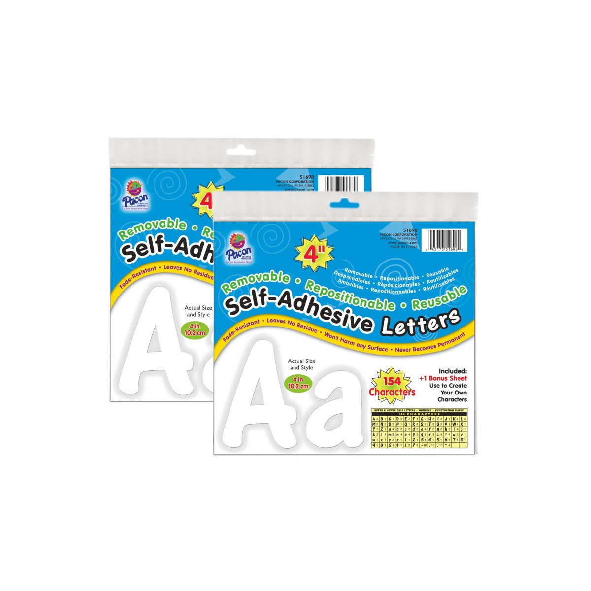Make your messages "come to life" and avoid the hassle of trying to create easy-to-read bulletin boards and signs on your own. These attractive, self-adhering letters come ready-to-use and adhere securely to any clean, dry surface - including glass, wood, and painted brick. They are durable, repositionable, and peel-off easily in most situations without leaving residue behind. The package contains letters, numbers, punctuation marks, and a blank page to create anything else you need! Ideal for posters, presentation boards, signs and window messages. Letters are fade-resistant and acid-free. Each pack includes 154 characters. Sold as 2 packs for a total of 308 characters.